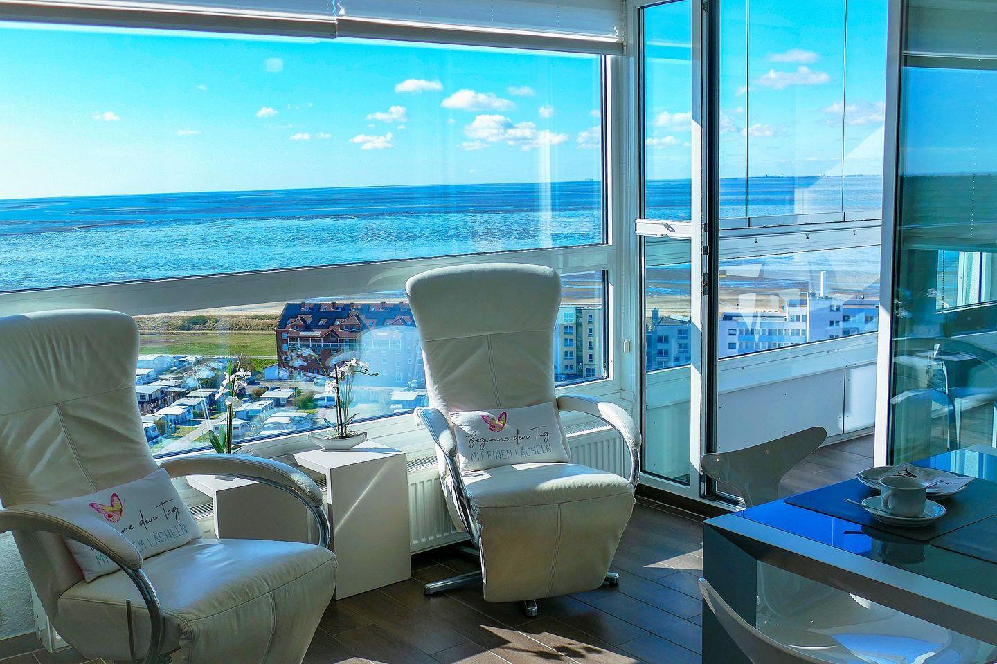 Die Ferienwohnung 1507 in der 15. Etage des beliebten Hauses „Frische Brise“ in Cuxhaven-Sahlenburg ist die ideale Unterkunft für Ihren Nordseeurlaub – großzügig, modern und mit direktem Meerblick.