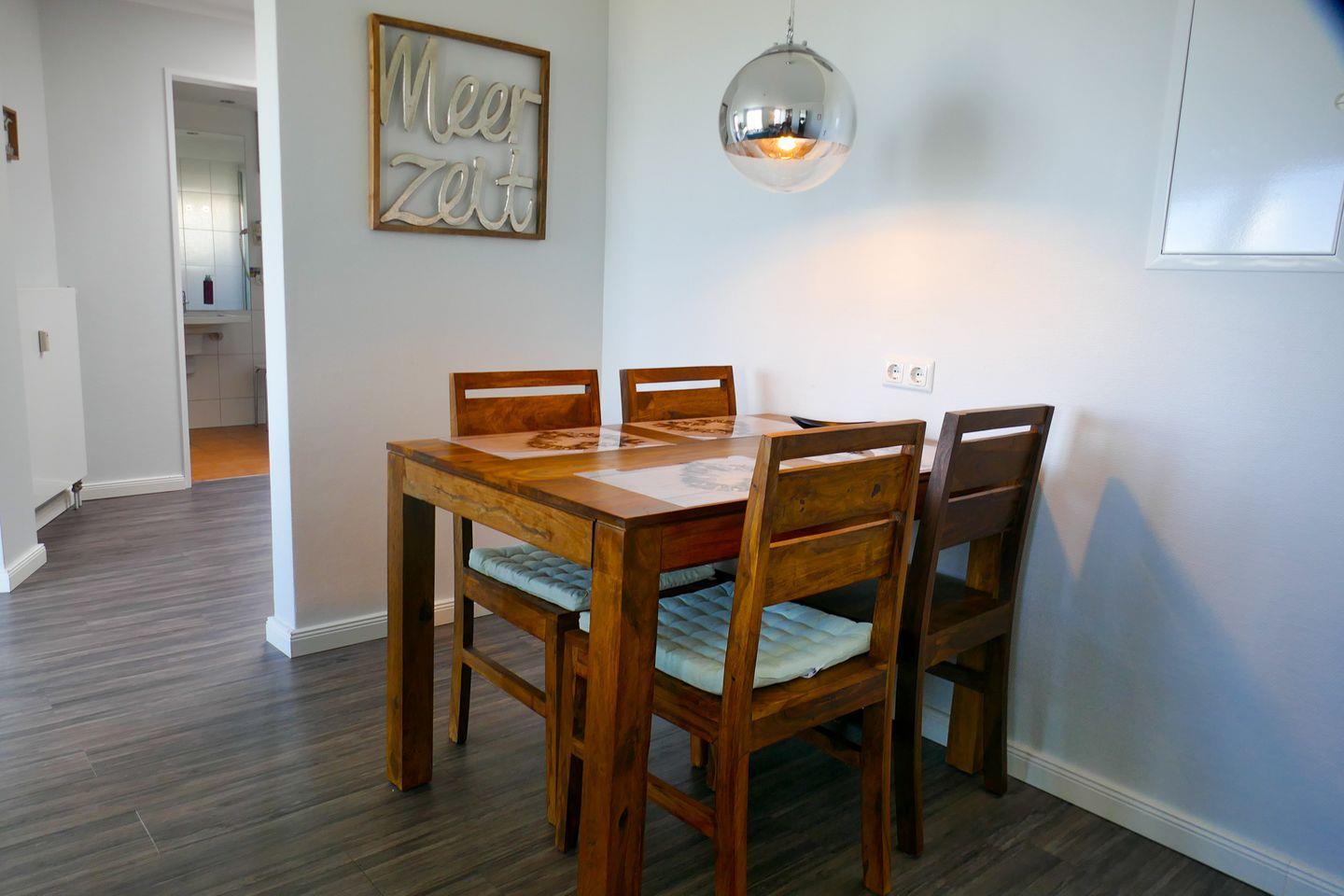 Ideal für Paare oder Alleinreisende bietet sie ein separates Schlafzimmer, ein modernes Tageslichtbad, zwei Flachbild-TVs, kostenfreies WLAN und eine Küche mit allem Nötigen. Der lichtdurchflutete Wohnbereich führt auf den Balkon mit traumhaftem Panoramablick auf die Nordsee und die Insel Neuwerk – perfekt für Frühstück mit Meeresrauschen oder unvergessliche Sonnenuntergänge. Vom Balkon aus lassen sich Kitesurfer, Schiffe und Pferdekutschen beobachten, die Richtung Neuwerk aufbrechen. Restaurants, Einkaufsmöglichkeiten und ein saisonaler Bäcker liegen in fußläufiger Nähe. Ein reservierter Parkplatz (Nr. 8) direkt am Haus sowie ein abschließbarer Fahrradraum stehen zur Verfügung. Bitte beachten Sie, dass das Rauchen in der Wohnung sowie auf dem Balkon nicht gestattet ist. Wir danken für Ihr Verständnis. Haustiere sind nicht erlaubt.