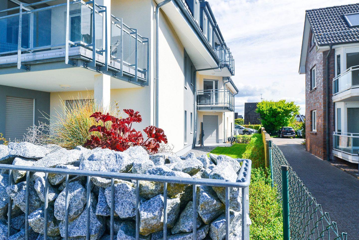 Die ca. 70?m² große Nichtraucherwohnung DU03 im beliebten Haus Dünenweg in Cuxhaven-Duhnen ist modern, hochwertig ausgestattet und ideal für Paare oder Familien. Sie verfügt über zwei separate Schlafzimmer, ein großzügiges Bad mit ebenerdiger Dusche, ein zusätzliches Gäste-WC, eine voll ausgestattete Küche sowie zwei möblierte Balkone – einer davon mit traumhaftem Meerblick bis zur Insel Neuwerk, der andere direkt von den Schlafzimmern zugänglich.