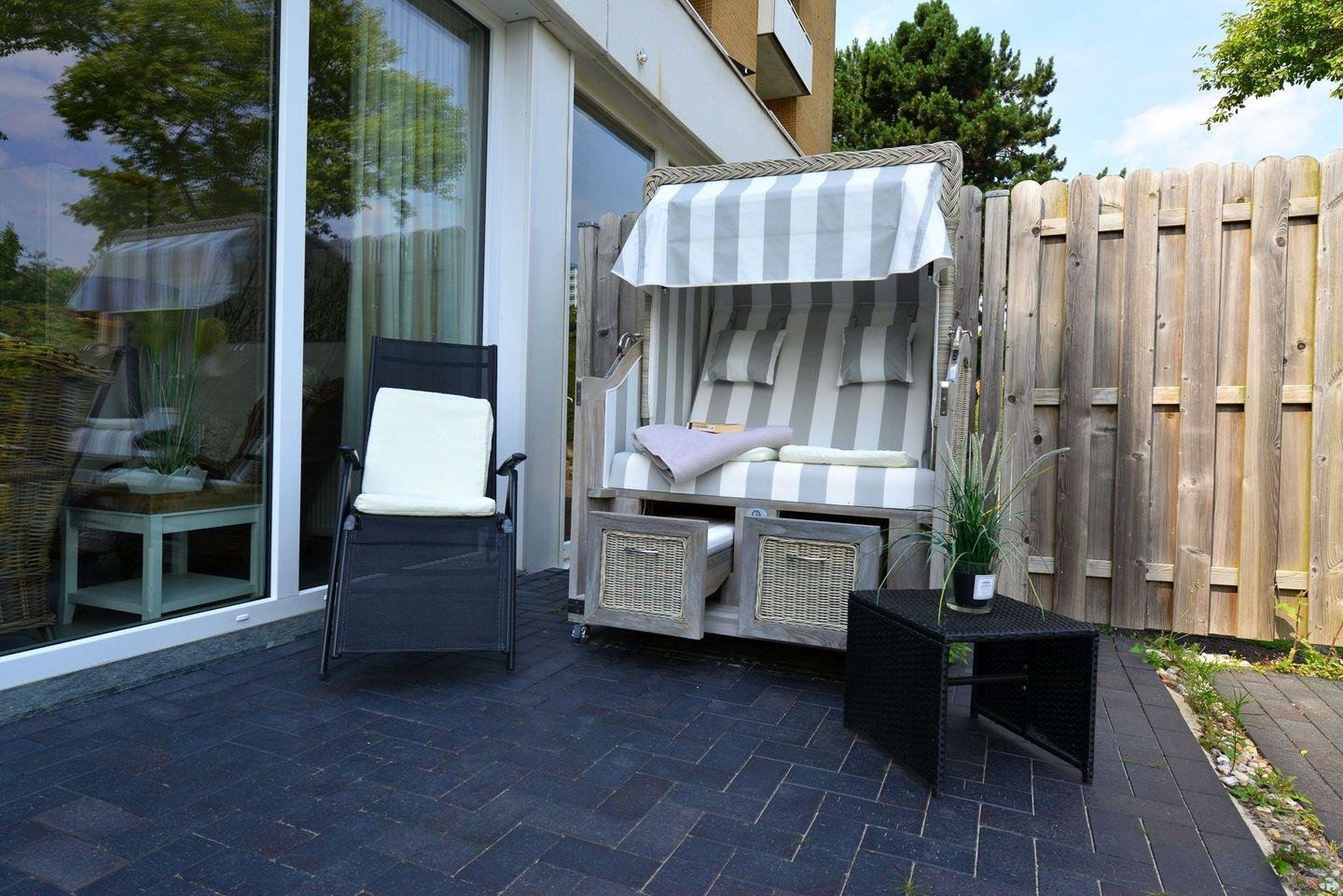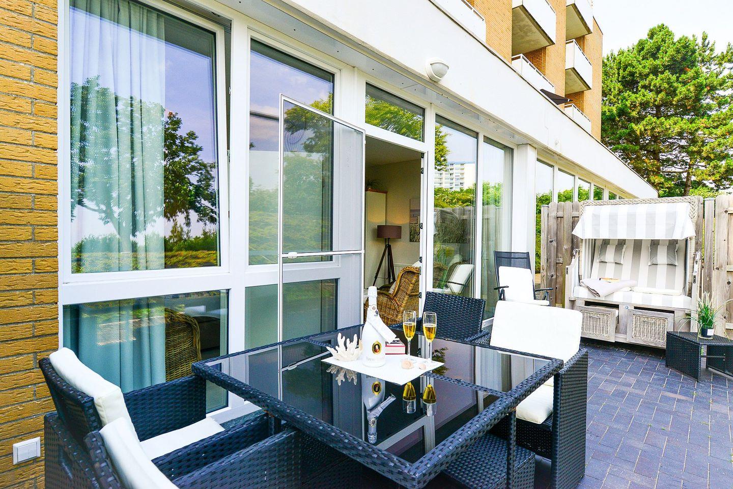 Freuen Sie sich auf entspannte Tage auf Ihrer Terrasse mit eigenem Strandkorb und frischer Nordseeluft und genießen Sie Stunden voller Entspannung und Wellness in dem Hauseigenen Schwimmbad, der Sauna oder dem Dampfbad unn eigner kostenfreien Wärmkabine in der Wohnung.