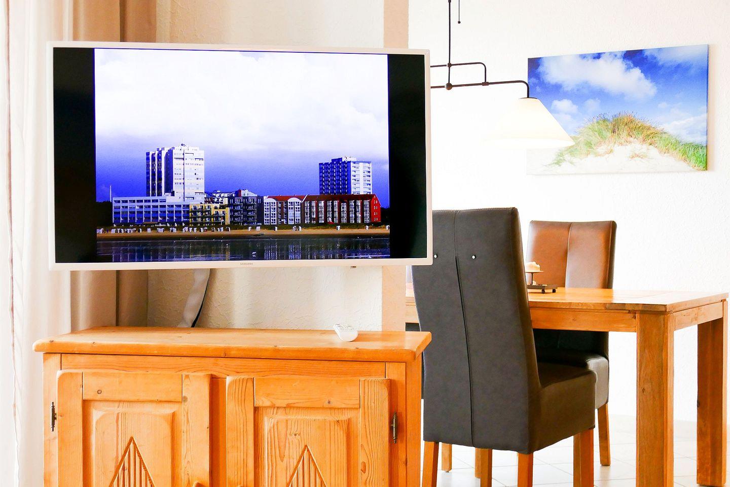 Der große verglaste Balkon bietet einen wunderschönen Panoramablick auf die Insel Neuwerk und das Wattenmeer. Ein eigener Strandkorb am Strand gehört ebenso dazu wie die Möglichkeit, Kitesurfer, Kutschfahrten und Schiffe am Horizont zu beobachten. Restaurants befinden sich in unmittelbarer Nähe, ein Bäcker ist saisonal geöffnet. Die Wohnung verfügt über eine voll ausgestattete Küche, 2 TVs, kostenfreies WLAN, Fußbodenheizung und einen Parkplatz am Haus. Auch in der kühleren Jahreszeit genießen Sie ein angenehmes Klima. Besonderheiten: Panorama-Balkon, Strandkorb, Parkplatz, Fußbodenheizung. Auch Hunde sind willkommen (10 € pro Nacht, max. 1 Hund pro Aufenthalt). Bitte beachten Sie: Der Aufzug fährt bis zur 3. Etage, eine Treppe führt zur Wohnung.