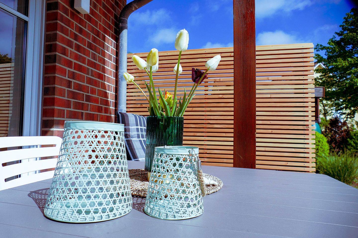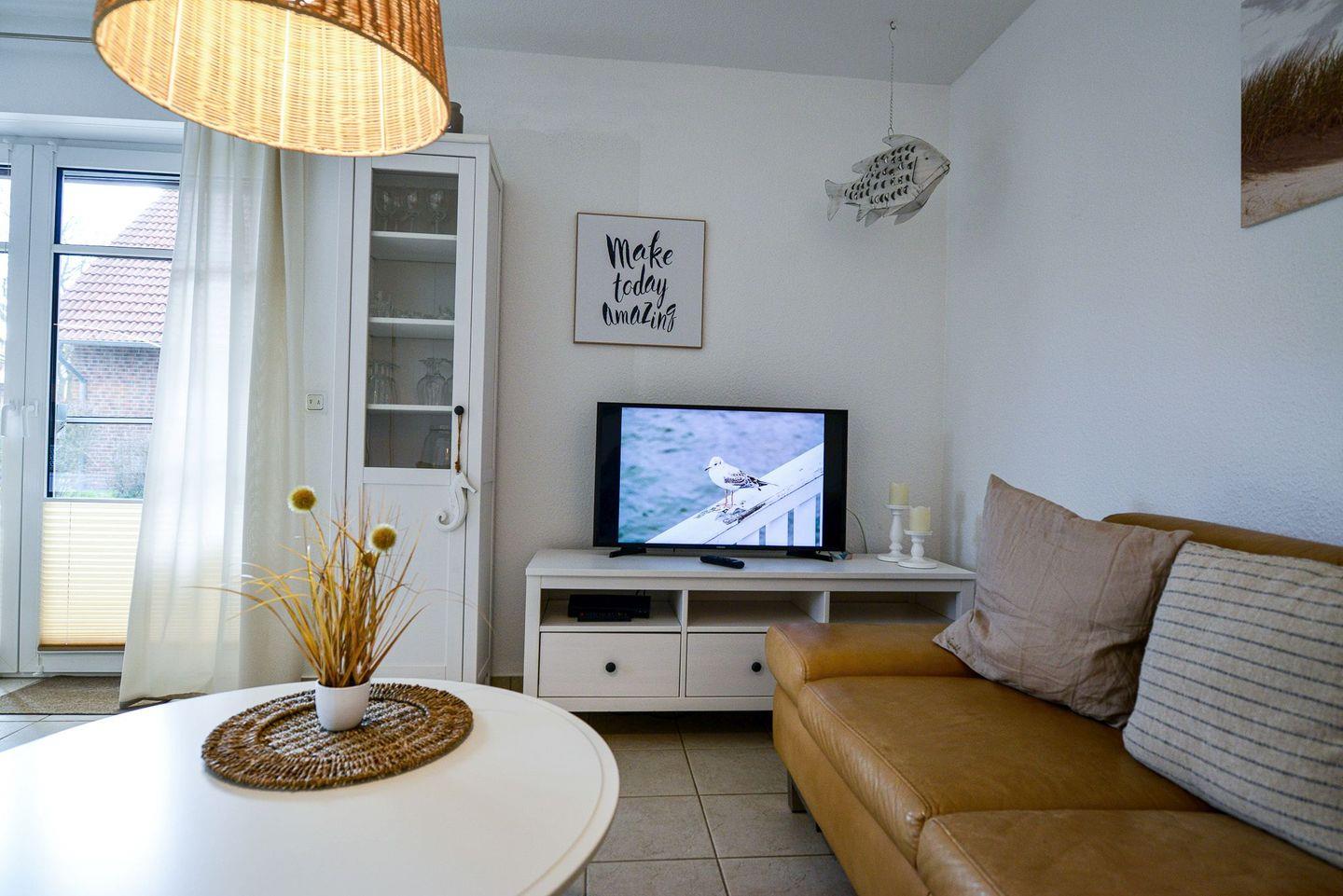 Helle 62 m² Erdgeschosswohnung mit skandinavischem Design, Südterrasse und Fußbodenheizung. Voll ausgestattete Küche, Bad mit bodengleicher Dusche & Waschmaschine, 2 Flatscreen-TVs, WLAN. Strand nur ca. 900 m entfernt. Kostenloser Parkplatz vor dem Haus, abschließbarer Fahrradraum. Kleiner Hund willkommen – ideal für entspannte Tage an der Nordsee.