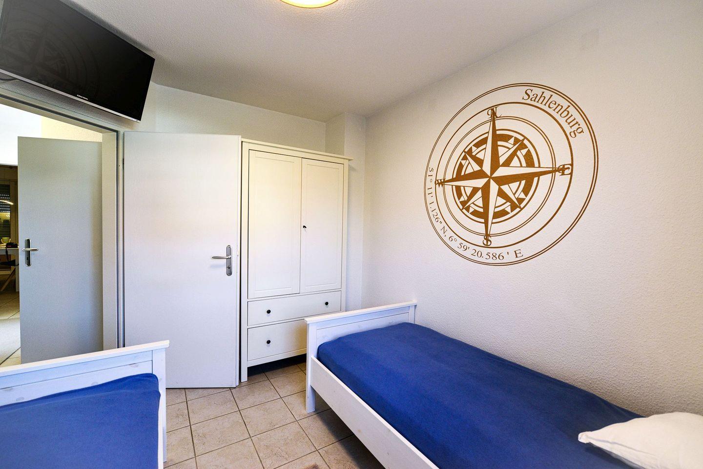 Diese 62 m² große Erdgeschosswohnung besticht durch helles, skandinavisches Design und eine überdachte Südterrasse, die zum Frühstücken oder Entspannen nach einem Tag am Strand einlädt. Die Ausstattung ist ideal für erholsame Ferientage: eine offene, voll ausgestattete Küchenzeile, ein modernes Bad mit bodengleicher Dusche und Waschmaschine, zwei Flatscreen-TVs, WLAN sowie Fußbodenheizung für behagliche Stunden auch in der kühleren Jahreszeit. Ein abschließbarer Abstellraum für Fahrräder und ein Parkplatz direkt am Haus sorgen für zusätzlichen Komfort. Der feinsandige Strand von Sahlenburg sowie das