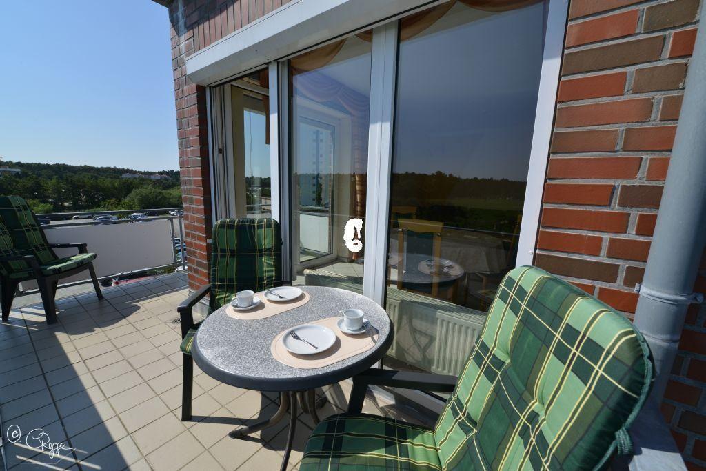 Auf dem schönen Balkon in der dritten Etage lassen sich außerhalb der Zeit am Strand erholsame und entspannte Stunden verbringen.