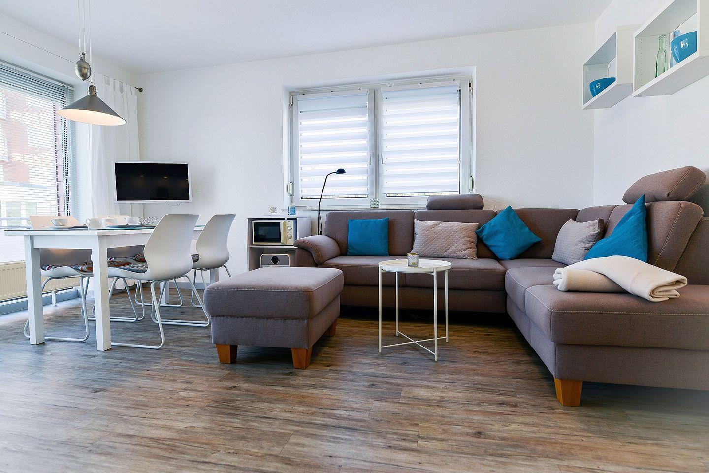 Von der gut ausgestatteten Küche, über das eigene Bad und den modernen Flatscreen TVs bis hin zum kostenlosen WLAN ist die Ferienwohnung komfortabel ausgestattet und lässt Sie unbeschwert Ihren Urlaub ohne Einbußen erleben.