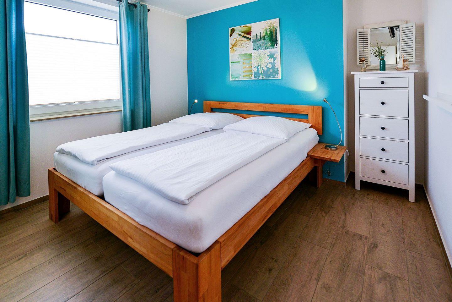 Die Wohnung verfügt über ein separates Schlafzimmer mit Doppelbett sowie ein Schlafsofa im Wohnbereich. Die moderne Küche ist voll ausgestattet und lädt zur Selbstverpflegung ein. Zwei Flatscreen-TVs, kostenfreies WLAN und Fußbodenheizung sorgen für Komfort – auch an kühlen Tagen. Das helle Bad mit Tageslicht ist mit einer ebenerdigen Dusche ausgestattet.
