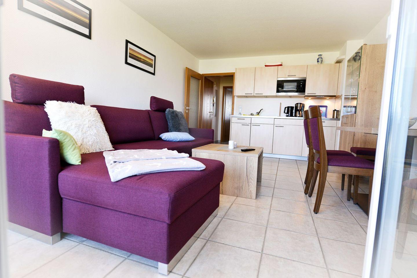 Die 40?m² große Ferienwohnung in der 3. Etage im Haus Horizont in Cuxhaven-Sahlenburg ist modern und komfortabel eingerichtet.