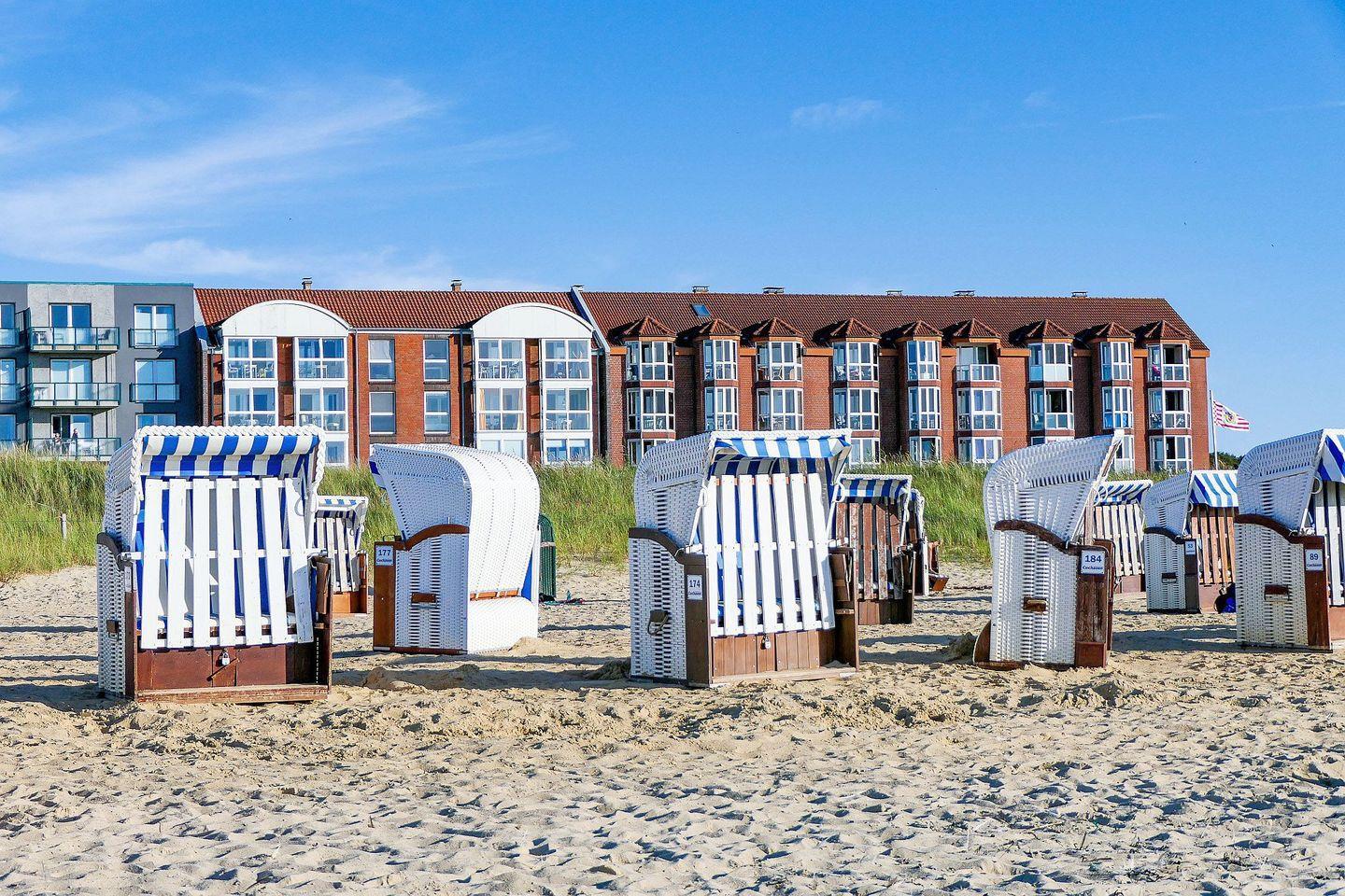 Besonders hervorzuheben ist der verglaste Westbalkon mit freiem Blick auf das Meer und die Insel Neuwerk. Der Balkon ist überdacht und lässt sich öffnen – ideal zum Entspannen bei jedem Wetter.