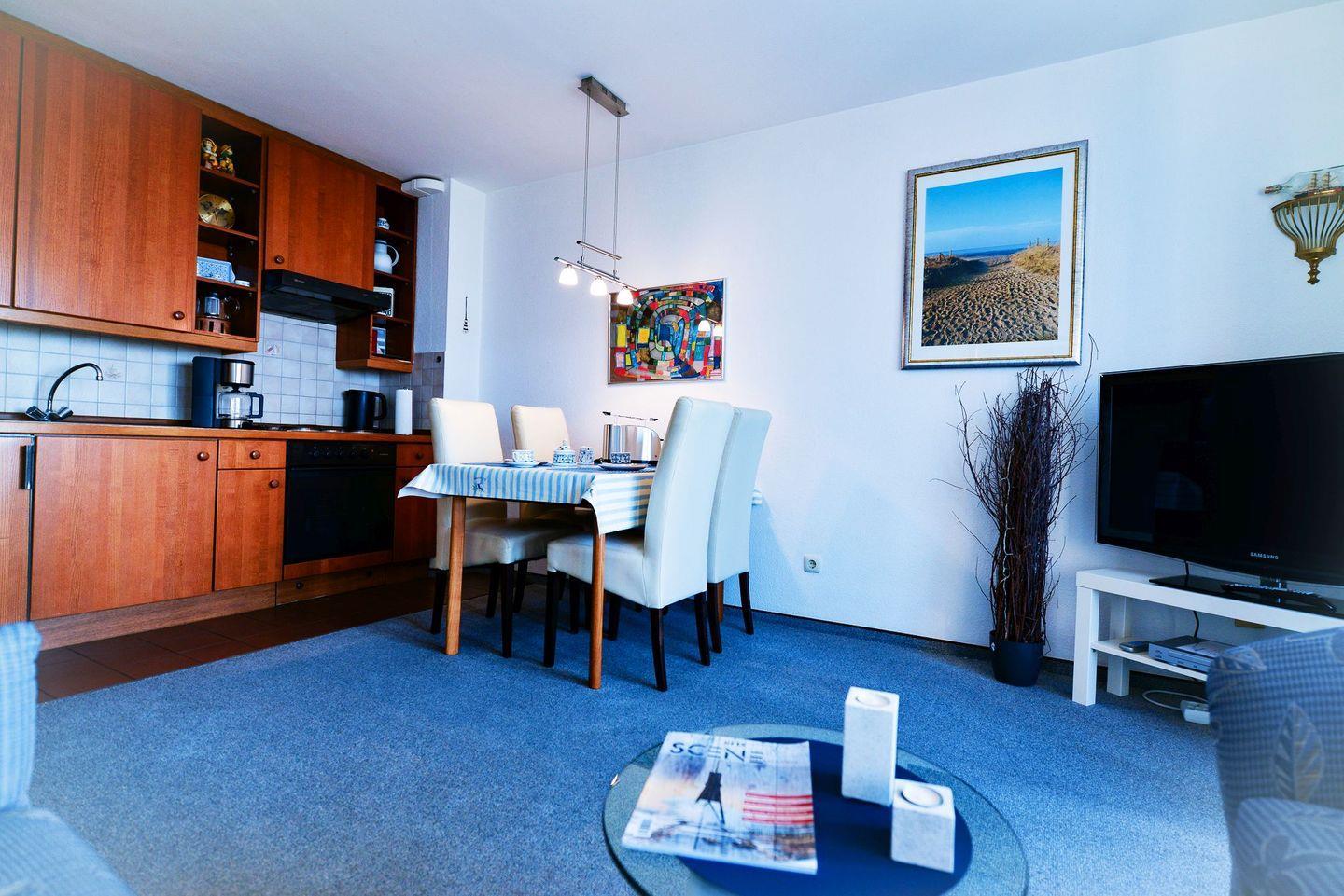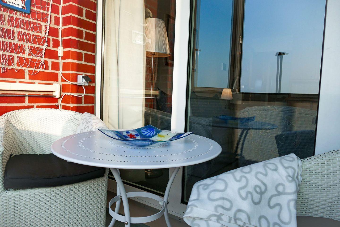 Sie verfügt über ein separates Schlafzimmer sowie ein Wohnzimmer mit Schlafcouch. Ein verglaster, überdachter Balkon erlaubt einen schönen Blick in Richtung Insel Neuwerk. Zur Ausstattung gehören eine praktische Küchenzeile, ein Flatscreen-TV, kostenloses WLAN und eine angenehme Fußbodenheizung, die auch in der kühleren Jahreszeit für Komfort sorgt.