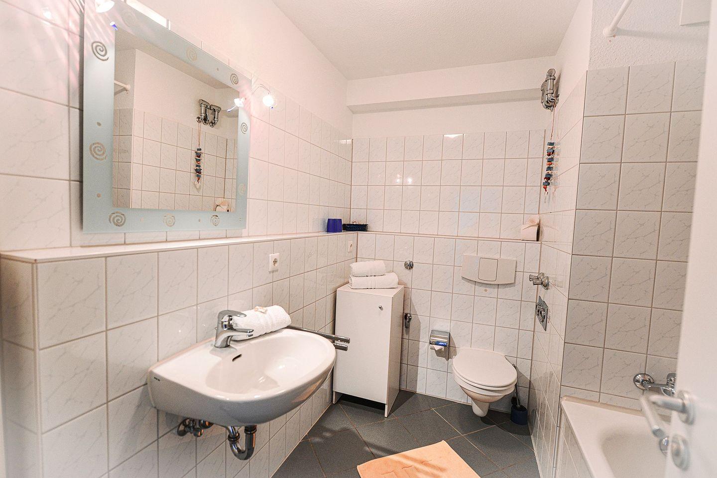 Einen erholsamen Start in die Urlaubstage garantiert Ihnen das schöne Bad mit Badewanne.