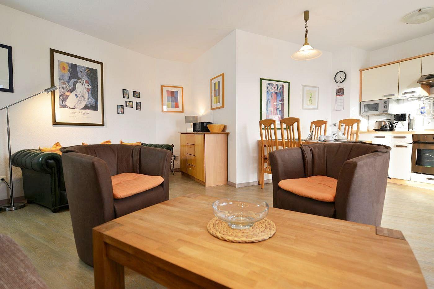 Die vollwertige Ausstattung der Ferienwohnung wird Sie keine Annehmlichkeiten des Alltags vermissen lassen und bietet Ihnen alles, was Sie für einen Urlaub ohne Abstriche benötigen. Der schöne Südbalkon lädt dazu ein, lange Strandtage in gemütlicher Atmosphäre ausklingen zu lassen.