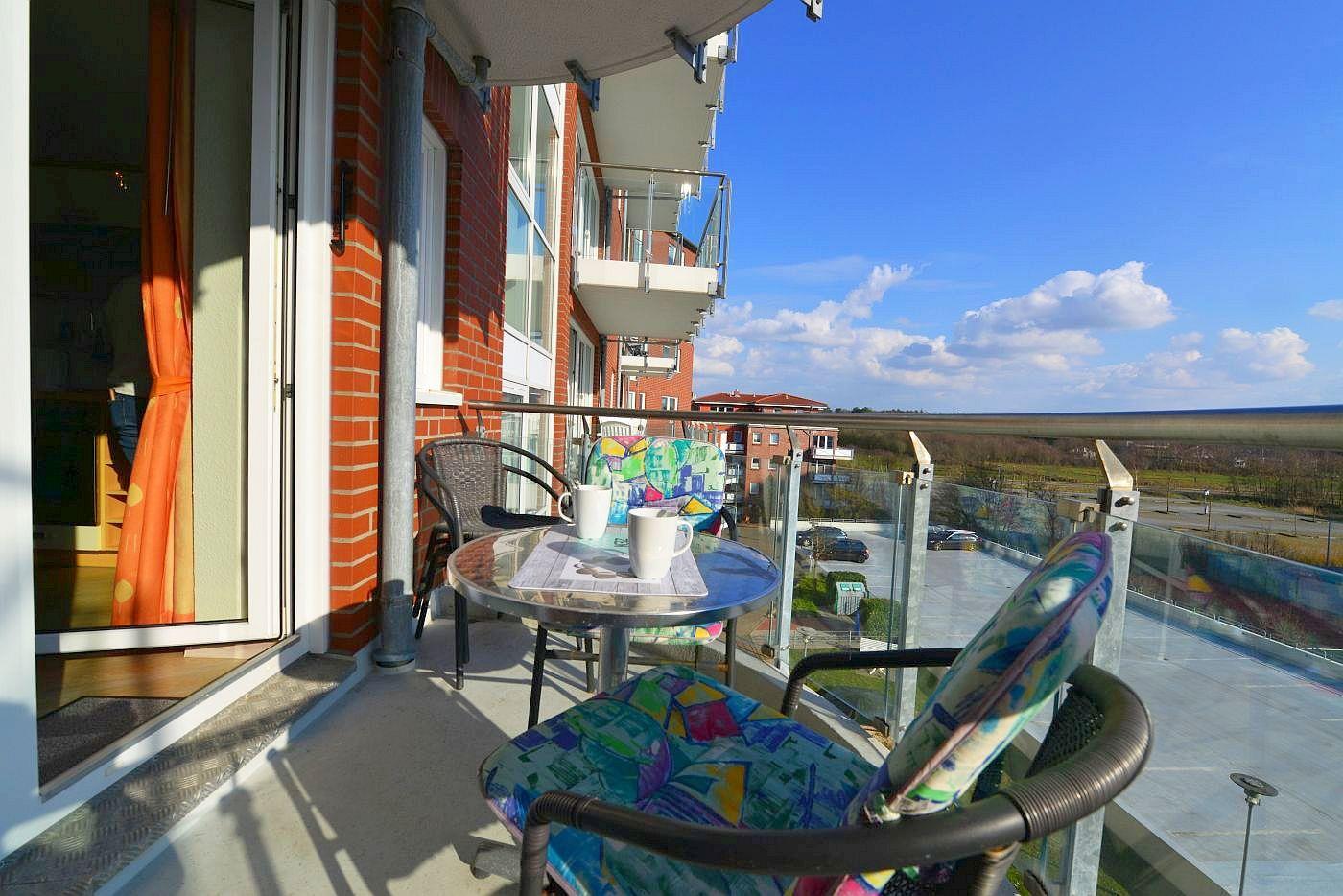 Der schöne Südbalkon lädt dazu ein, lange Strandtage in gemütlicher Atmosphäre ausklingen zu lassen.