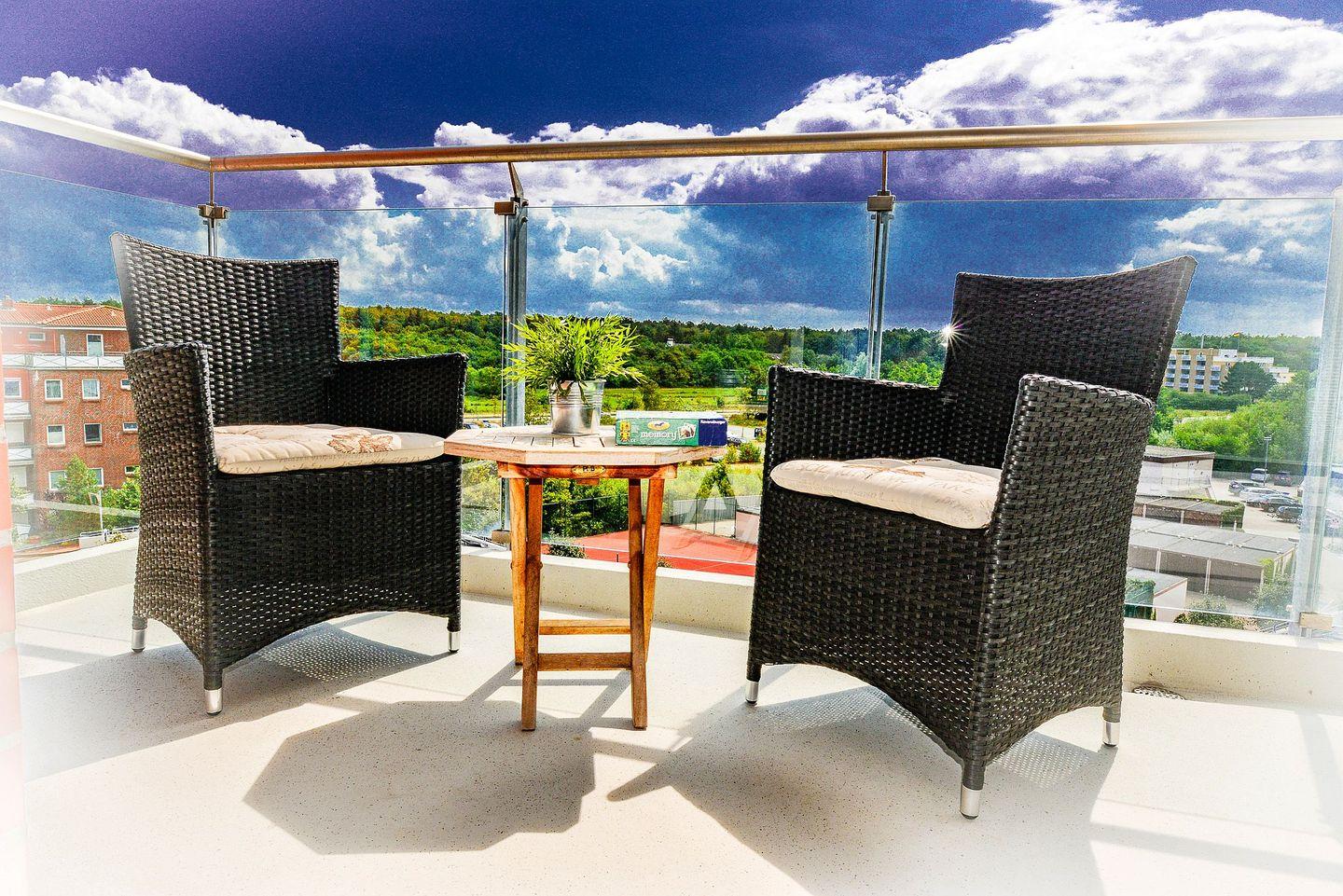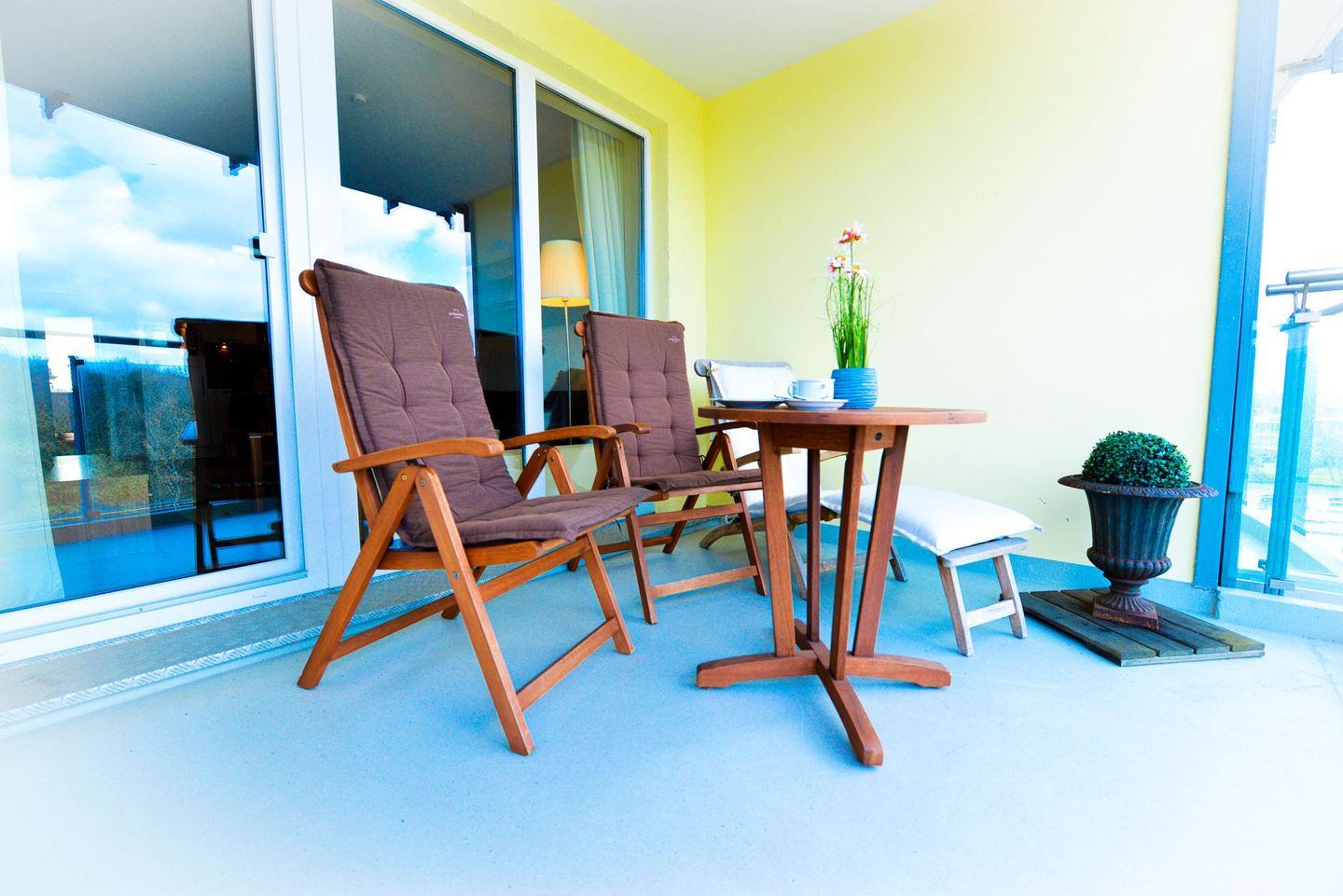 Die beiden Balkone, einer davon mit seitlicher Seesicht und Blick auf die Insel Neuwerk, laden dazu ein, erholsame Stunden mit frischer Meeresluft nach einem langen Tag am Meer zu verbringen.