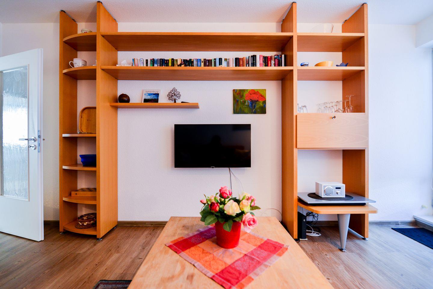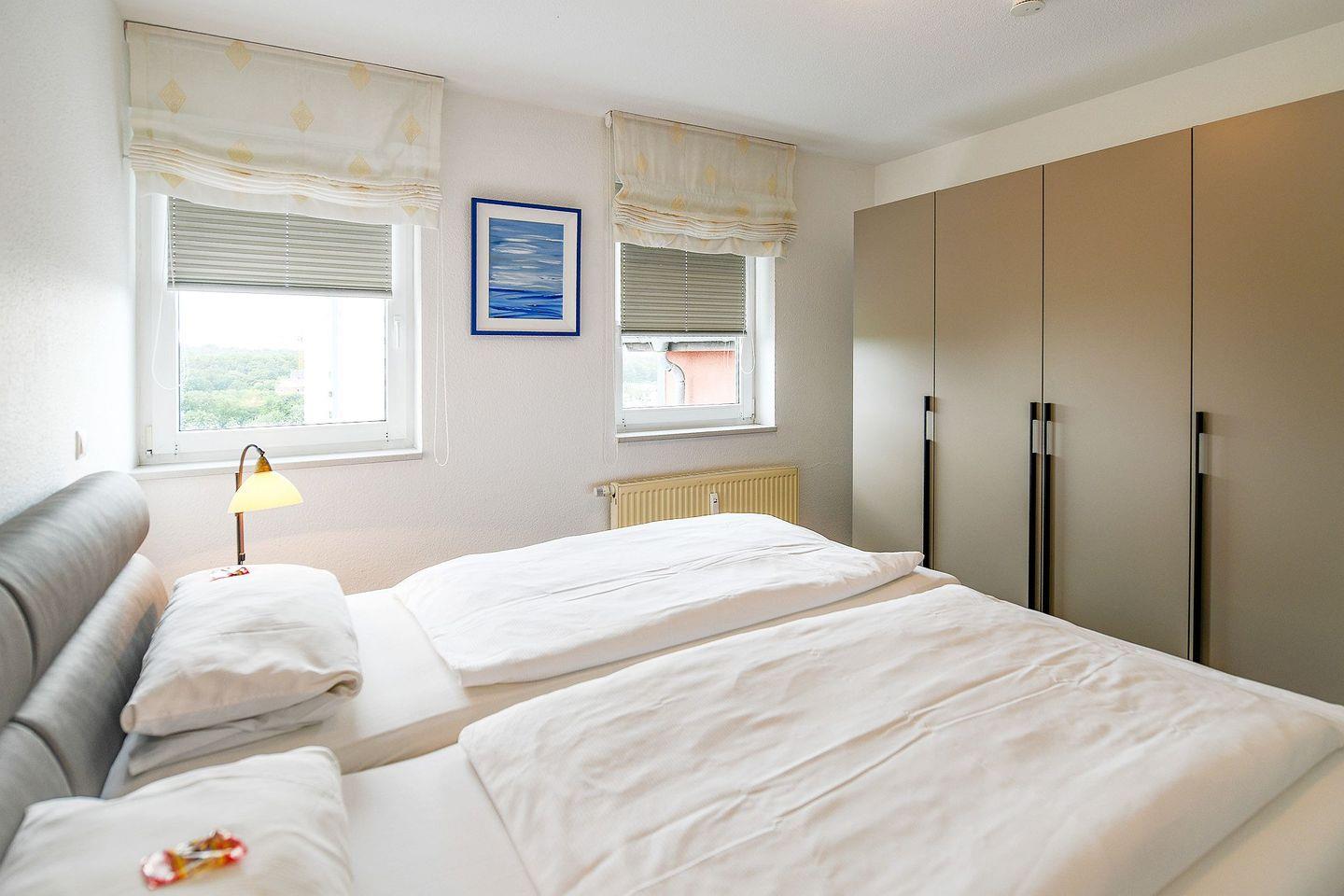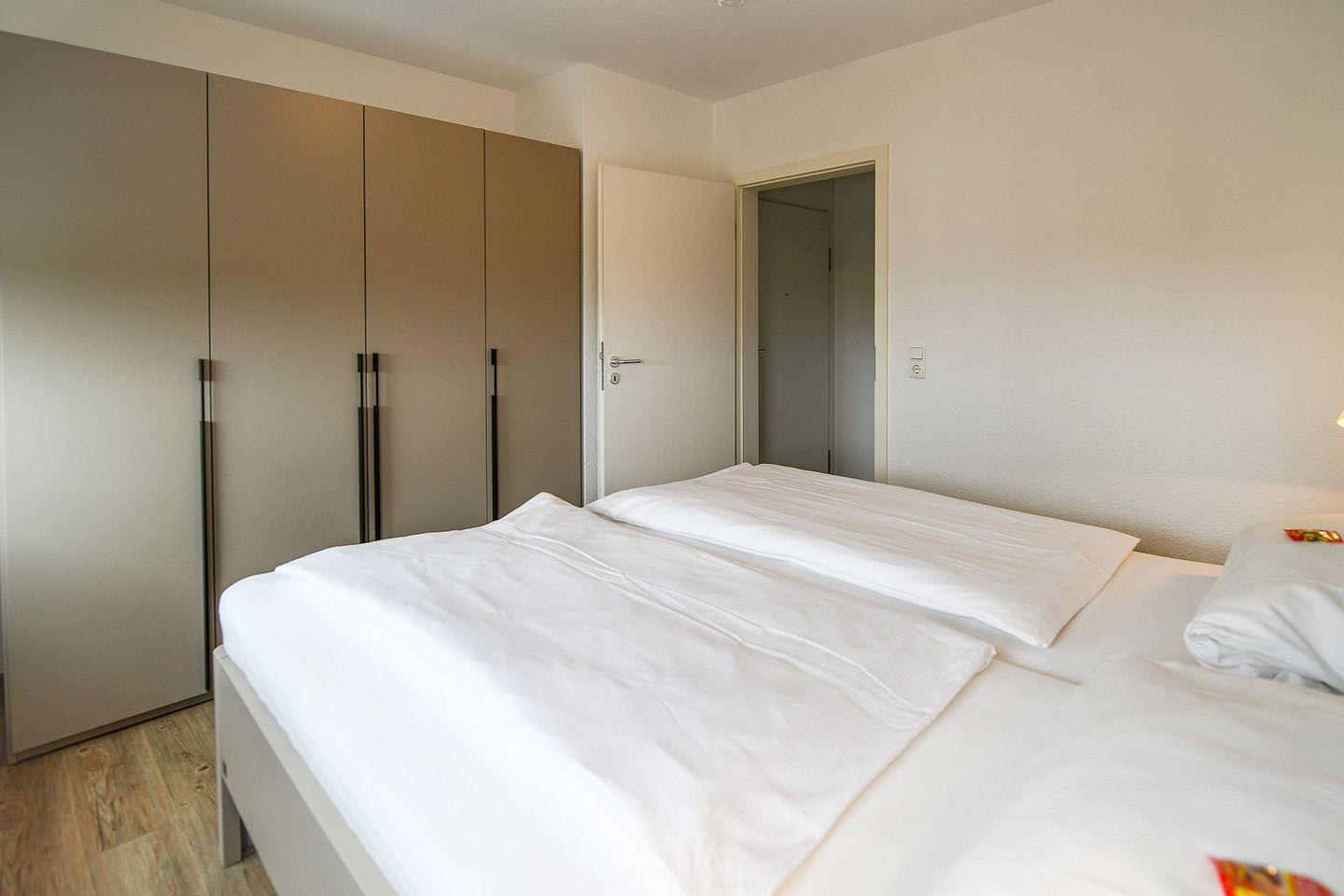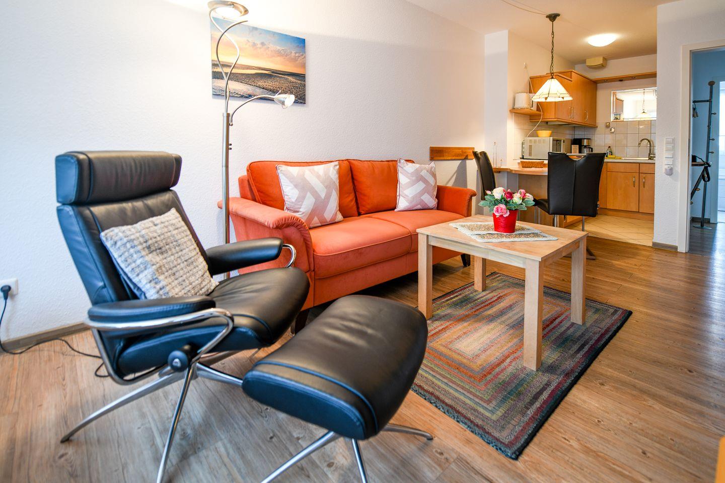 Die Nichtraucherwohnung im Haus Nordseebrandung bietet ein separates Schlafzimmer mit Doppelbett, einen hellen Wohnbereich mit Flachbild-TV und kostenfreiem WLAN sowie eine offene, voll ausgestattete Küchenzeile. Auf dem Balkon genießen Sie die frische Meeresluft und den schönen Naturblick.