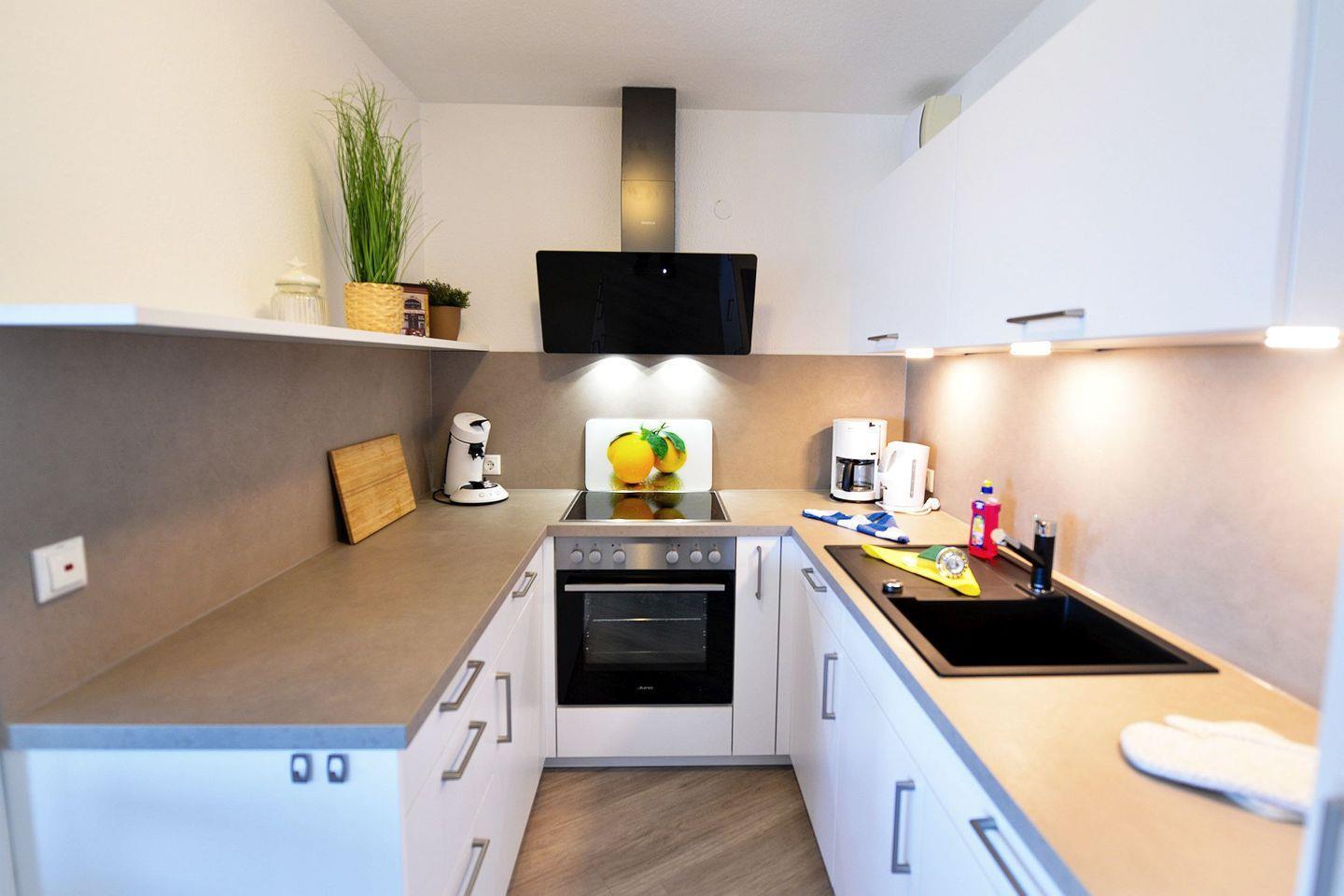 Die Wohnung ist hell und freundlich eingerichtet und verfügt über eine moderne, voll ausgestattete Küche. Neben einer klassischen Kaffeemaschine steht Ihnen hier auch eine zusätzliche Senseo-Kaffeemaschine zur Verfügung. Für Unterhaltung sorgen zwei Flachbildfernseher, und mit dem kostenlosen WLAN bleiben Sie auch im Urlaub gut verbunden. Ein eigener Parkplatz direkt am Haus ist im Preis inbegriffen, ebenso wie ein kleiner Abstellraum für Koffer oder andere Utensilien.