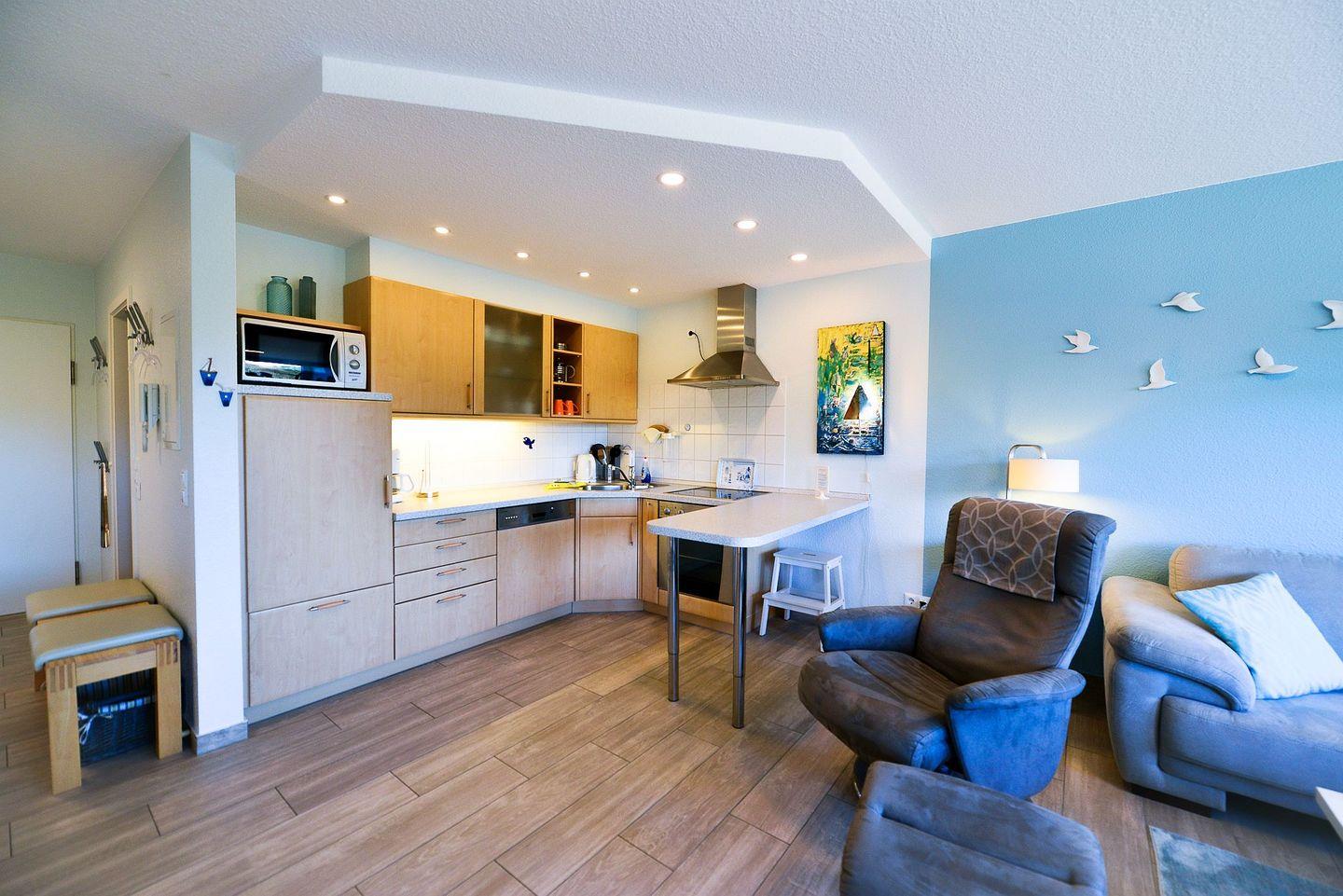Für das alltägliche Wohlbefinden ist dank der vollwertigen und schönen Ausstattung der Ferienwohnung stets gesorgt so lassen sich in der vollausgestatteten Küche leckere Gerichte für ein entspanntes Essen auf dem überdachten Balkone zubereiten und das neue Bad mit ebenerdiger Flachdusche lässt Sie täglich neue Energie für weitere tolle Urlaubstage tanken.