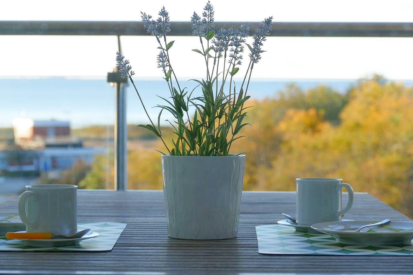 Besondere Stunden lassen sich auf einem der beiden überdachten Balkone verbringen, von denen einer einen direkten Blick aufs Meer und die Insel Neuwerk bietet und auf welchen man ganz entspannt den Abend nach einem langen Tag am Strand ausklingen lassen kann.