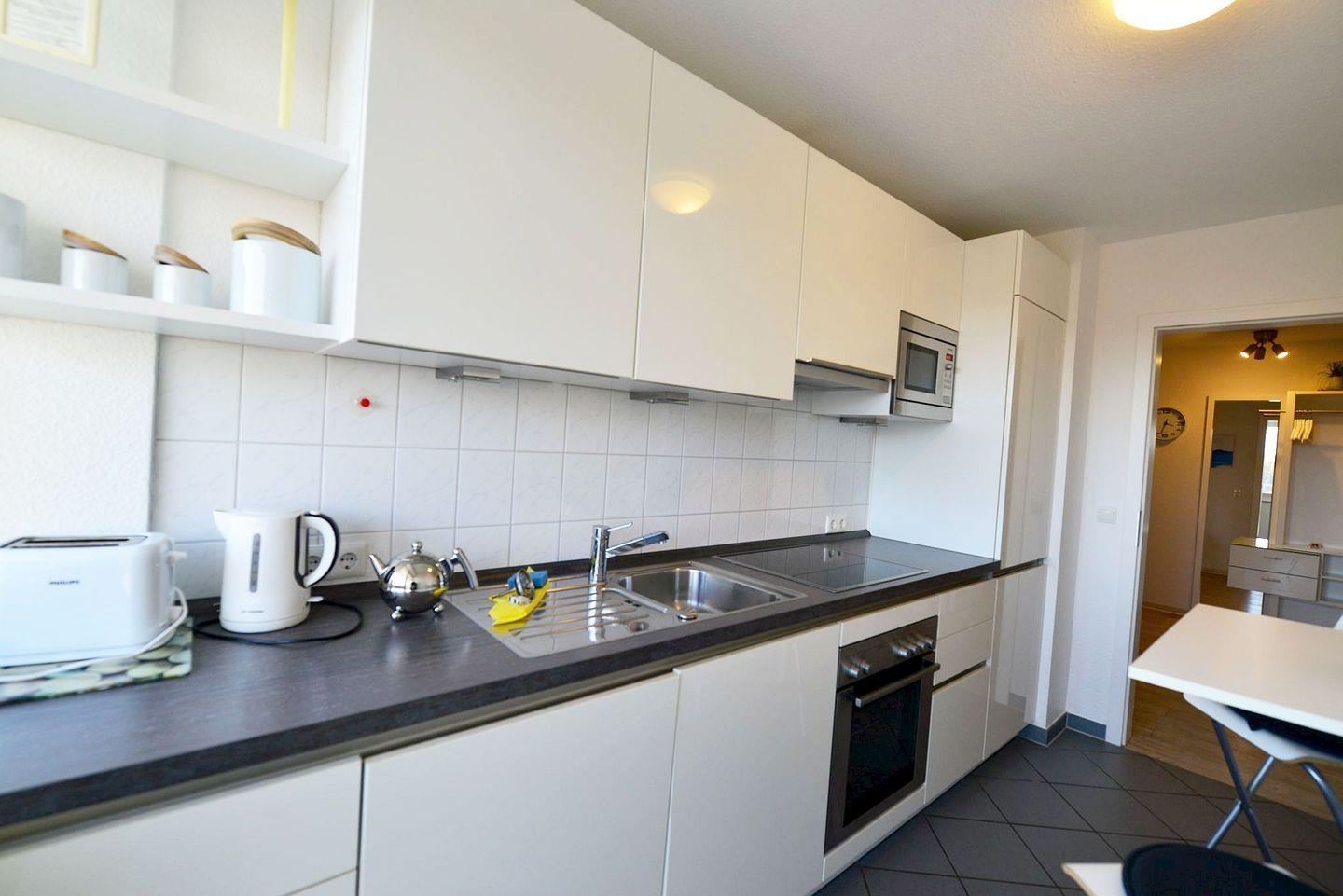 Urlauber, die gemeinsam mit Ihrem Hund verreisen sind genauso willkommen, wie Urlauber ohne Haustier. Für eine komfortable An- und Abreise bietet die Ferienwohnung einen kostenlosen Parkplatz in der Tiefgarage des Hauses. Saisonbedingt befindet sich ein Bäcker direkt im Haus.