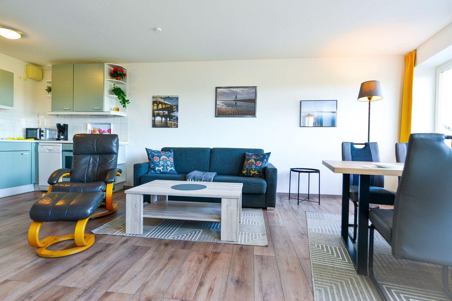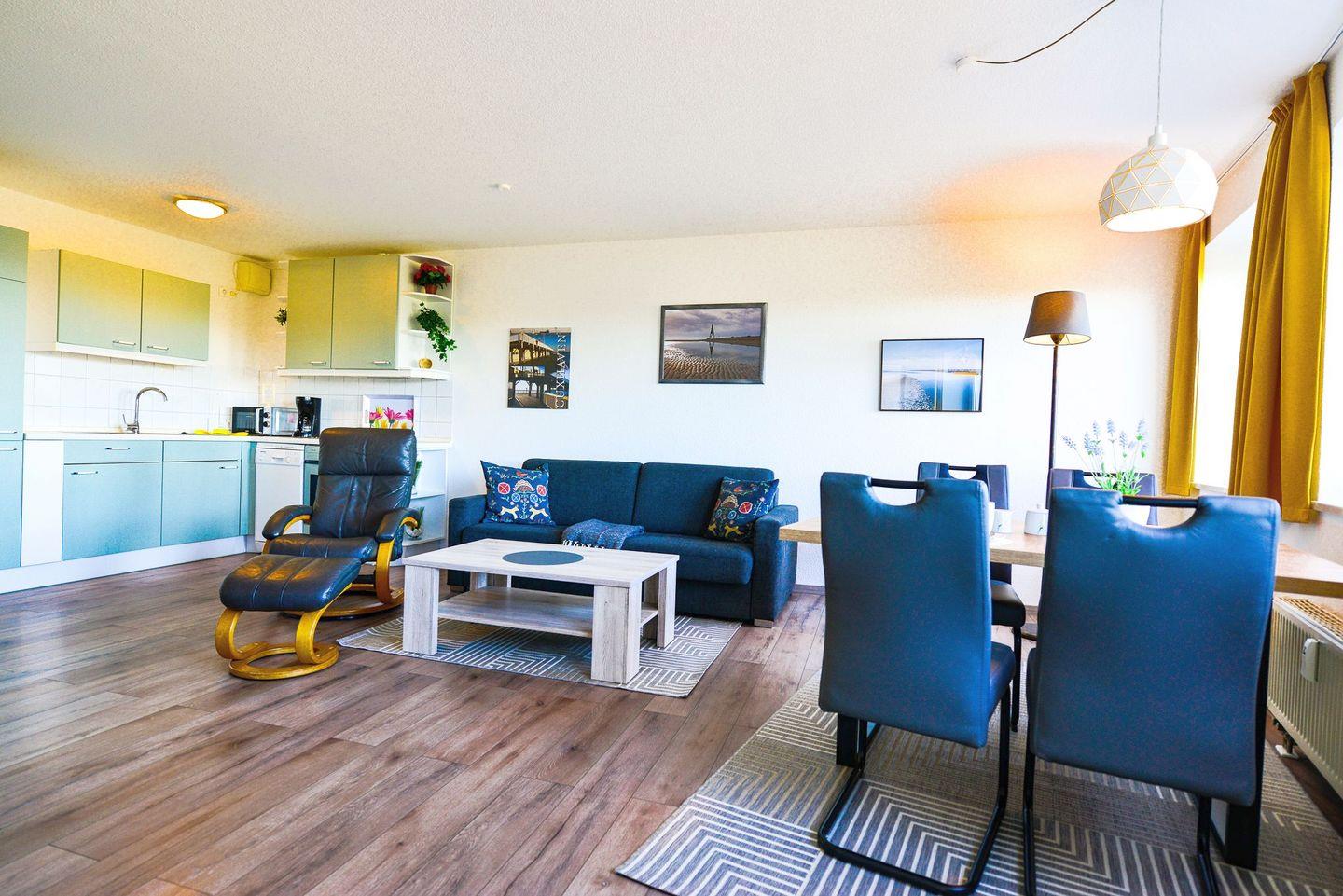 Gemütlich und mit viel Platz finden Urlauber in dieser 63m² Ferienwohnung ein Zuhause für eine entspannte Zeit an der Nordsee.