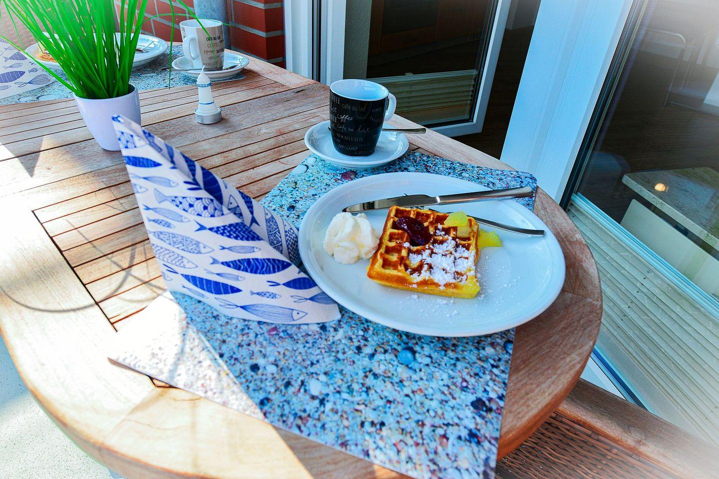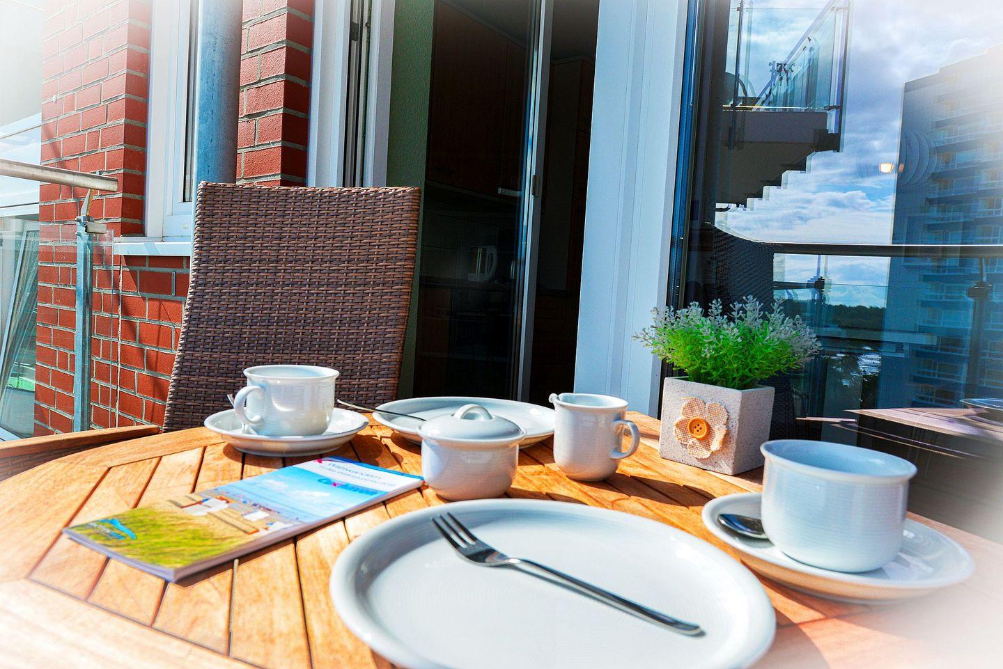 Für erholsame und schöne Stunden nach einem langen Tag am Meer, eignet sich der schöne überdachte Balkon mit ideal.