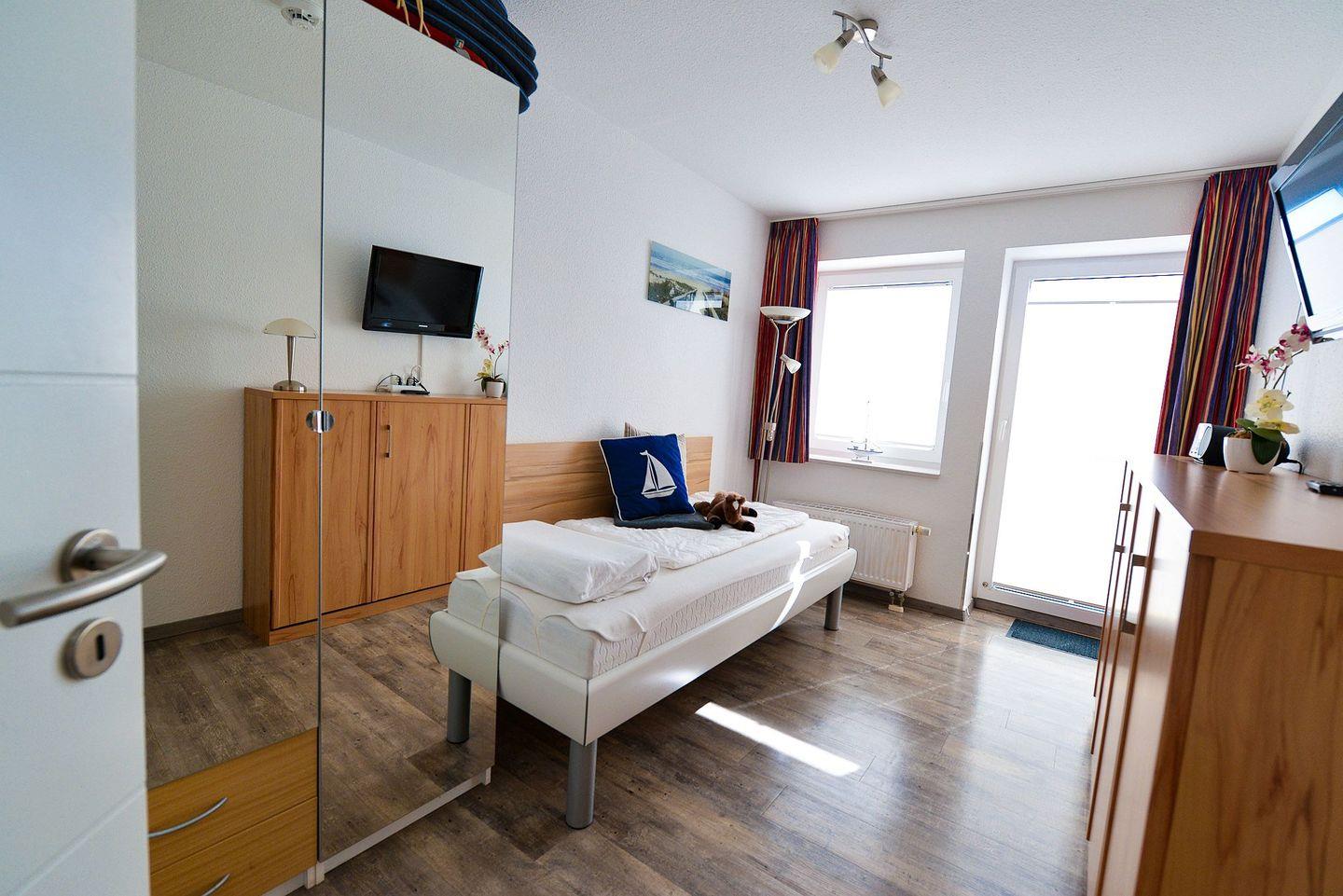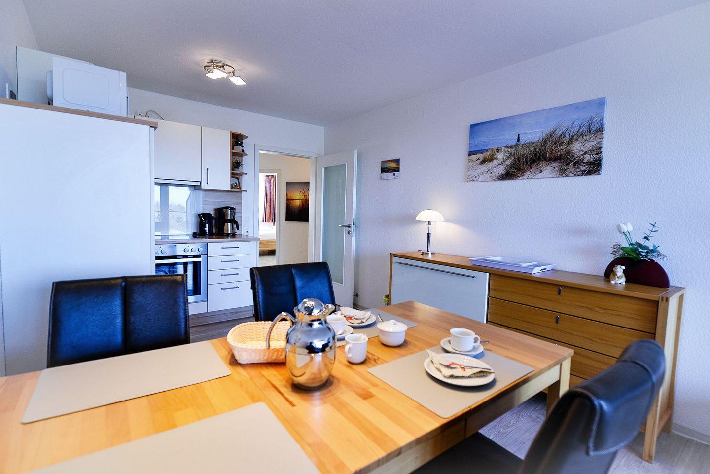 Eine schöne Zeit außerhalb der langen Tage am Strand lässt sich auf den 63m² dieser hochwertig eingerichteten Nordsee Ferienwohnung verbringen, die Sie einen Urlaub ohne Abstriche erleben lässt. Bis zu 4 Personen finden hier ein schönes Zuhause für den Urlaub an Meer und alles, was man dafür benötigt ? so lassen sich in der vollwertig ausgestatteten Küche leckere Gerichte zubereiten und auch langen TV-Abenden und Entertainment steht Dank des kostenlosen WLAN und der drei Flatscreen TVs im Wohnzimmer und in den Schlafräumen nichts im Wege.