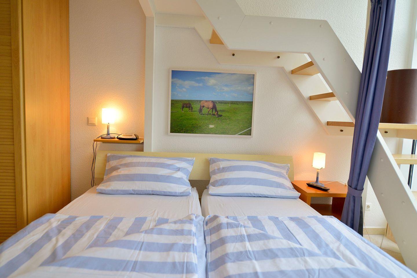 Das moderne Badezimmer mit ebenerdiger Flachdusche bietet Komfort vom ersten Moment an. Im Wohnbereich erwartet Sie eine neue Couch, ein Flatscreen-TV und kostenfreies WLAN. Ein weiterer Fernseher im Schlafzimmer ermöglicht gemütliche Abende – auch mal im Bett. Besonders charmant: Eine kleine Treppe führt zur offenen Empore mit Einzelbett, ideal für ein Kind oder eine zusätzliche Rückzugsmöglichkeit.