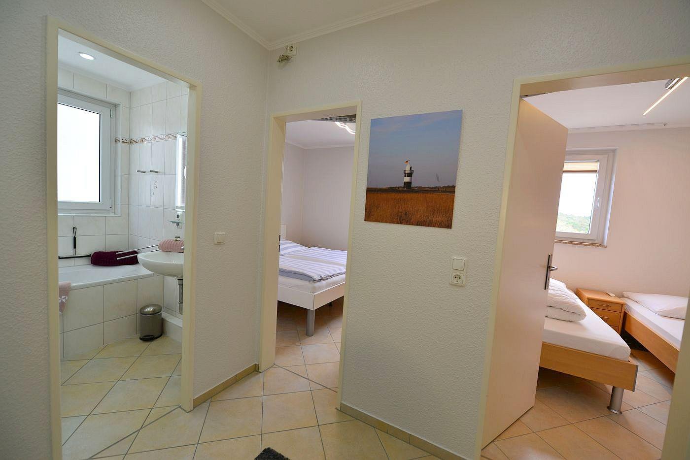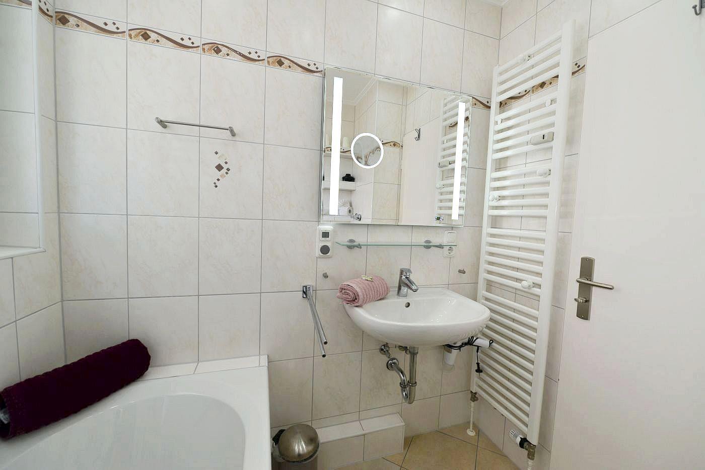 Erholung während Ihres Strandurlaubs garantieren Ihnen, neben dem wunderbaren Sandstrand, die verglaste Fensterfront zur Südseite zum Öffnen, das Bad mit Badewanne, das Schwimmbad im eigenen Haus, sowie die Sauna, die gegen Gebühr genutzt werden kann.