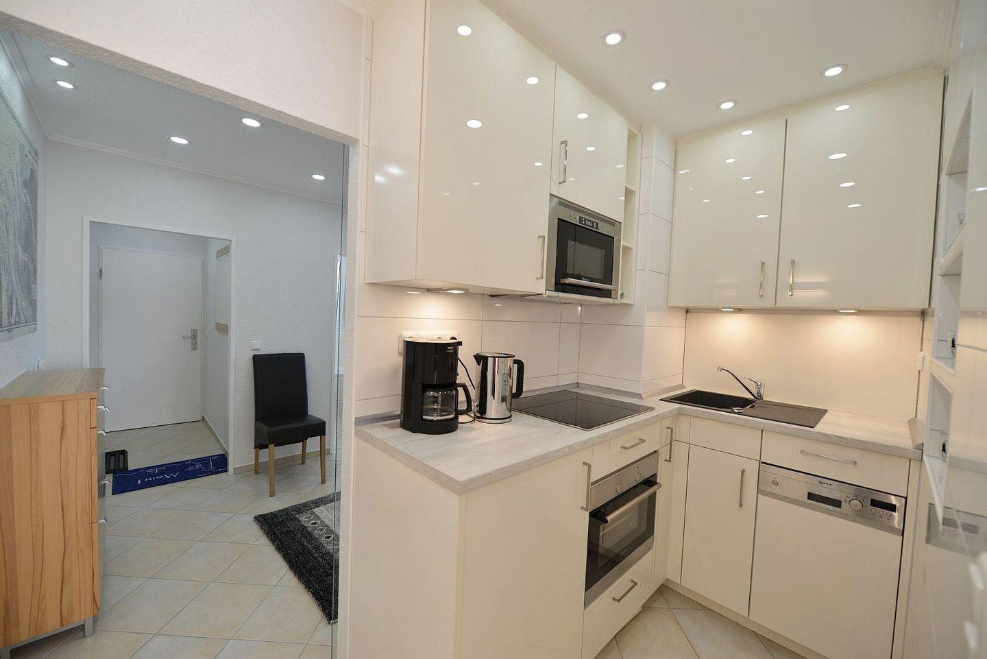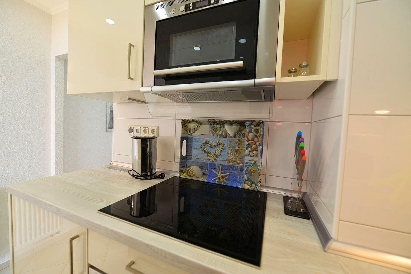 Die lichtdurchflutete Ferienwohnung mit seitlicher Seesicht befindet sich in direkter Strandlage mit einer modernen, offenen und vollausgestatteten Küche, sodass Sie jeden Urlaubstag mit einem entspannten Frühstück am Meer beginnen können.