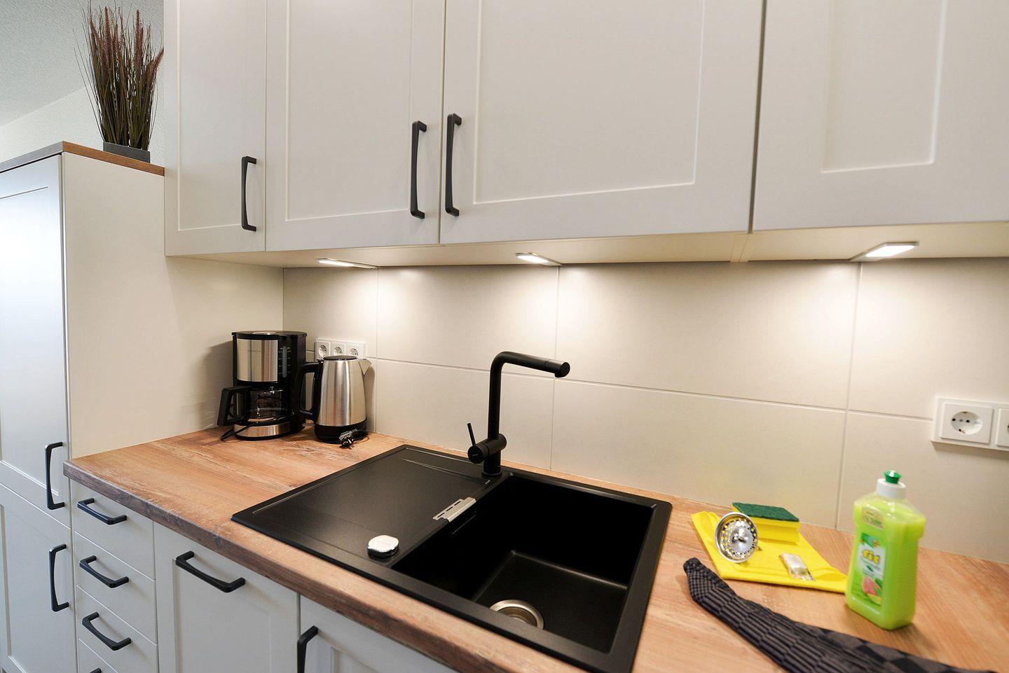 Die neue hochwertige Ferienwohnung befindet sich in direkter Strandlage mit einer separaten, offenen und vollwertigen Küchenzeile, sodass Sie jeden Urlaubstag mit einem entspannten Frühstück mit seitlichem Blick aufs Meer beginnen können.