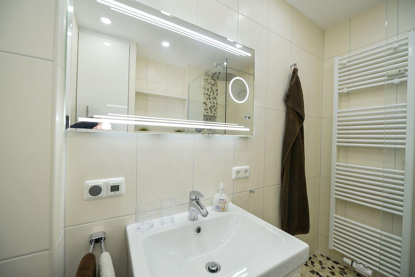 Die ca. 50m² große Ferienwohnung für bis zu 4 Personen begrüßt Sie mit modernem Flair, Schwimmbad, Sauna und viel Raum für einen entspannten Urlaub im schönen Norden Deutschlands – Meeresrauschen inklusive!