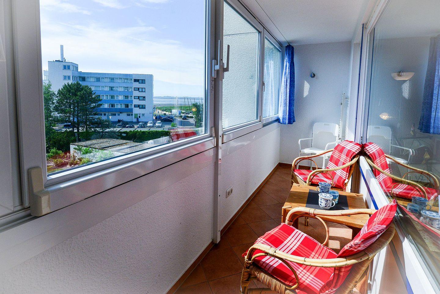 Ein besonderes Highlight dieser Ferienwohnung ist der verglaste Westbalkon, auf welchem sich auch außerhalb der langen Tage am Strand wunderbare Stunden an der frischen Meeresluft verbringen lassen.