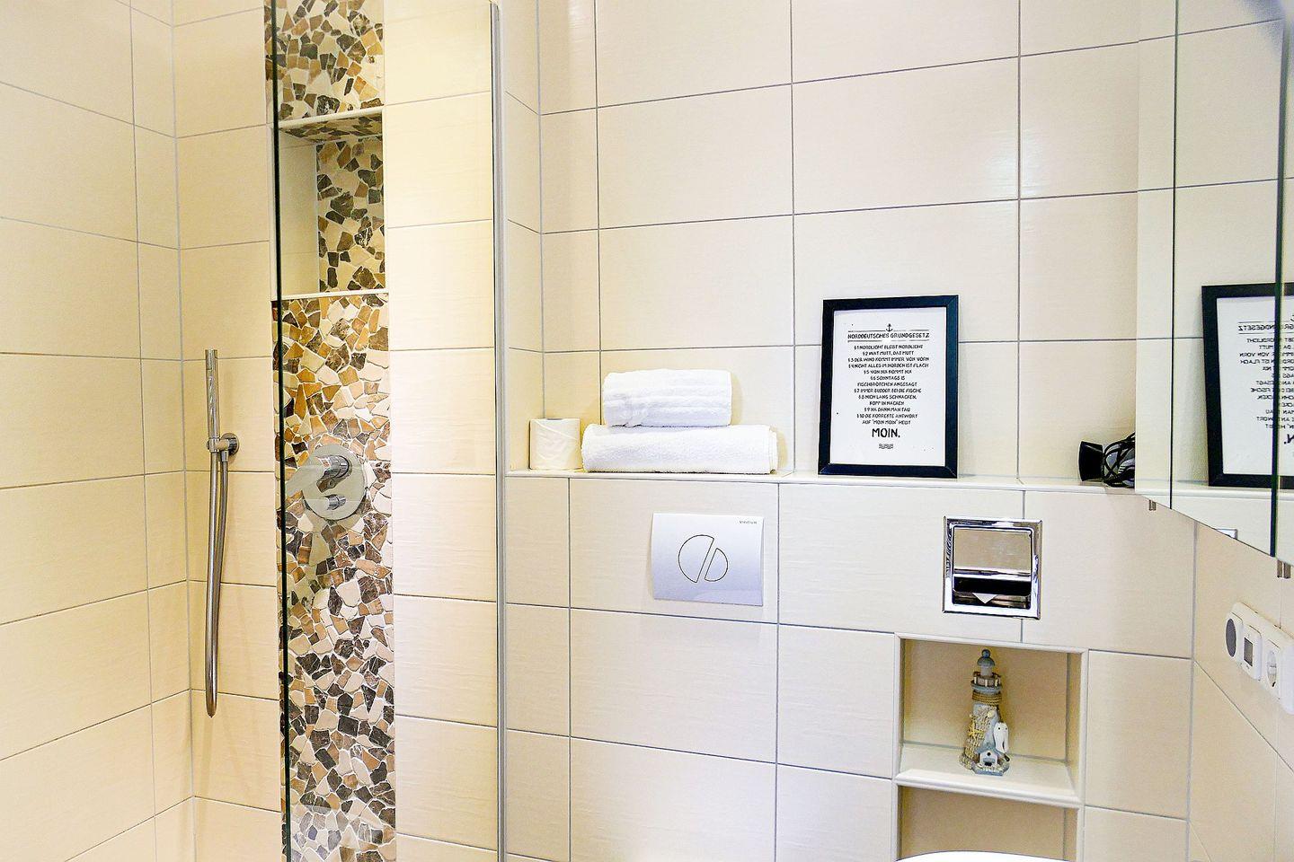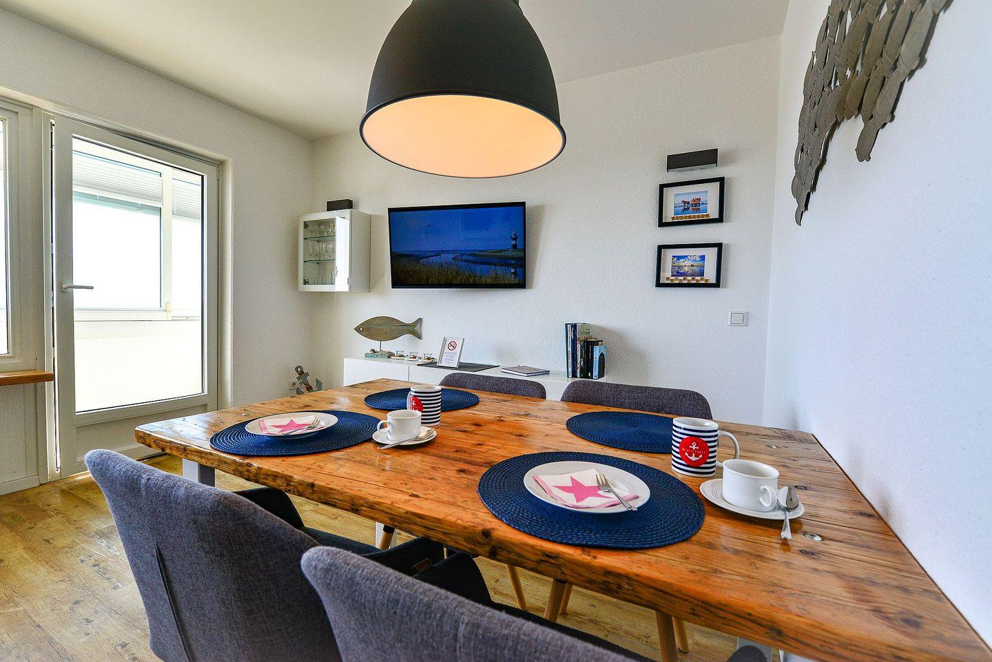 Die modern eingerichtete Ferienwohnung begrüßt Sie mit hochwertiger Ausstattung, Schwimmbad, Sauna im Haus und viel Raum für einen entspannten Urlaub - Meeresrauschen mit direkter Seesicht inklusive!
