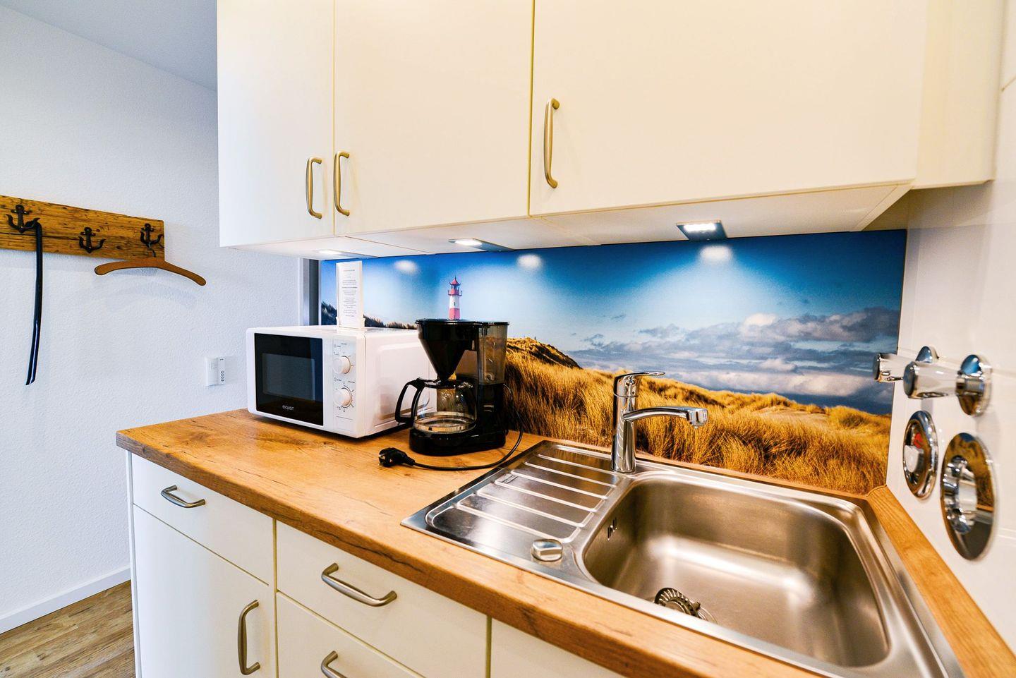 Die modern eingerichtete Ferienwohnung begrüßt Sie mit hochwertiger Ausstattung, Schwimmbad, Sauna und viel Raum für einen entspannten Urlaub Meeresrauschen inklusive! Die lichtdurchflutete Ferienwohnung befindet sich in unmittelbarer Strandlage und bietet Ihnen eine hochmoderne Ausstattung mit einer separaten, offenen und vollausgestatteten Küche. Der großzügige Balkon ist mit verglasten Schiebeelementen versehen, so dass dieser bei Wind und Wetter genutzt werden kann. Beginnen Sie jeden Urlaubstag mit einem entspannten Frühstück inklusive Meerblick ! Erholung während Ihres Strandurlaubs garantieren Ihnen, neben dem wunderbaren Sandstrand, die moderne Regendusche, das Schwimmbad im eigenen Haus, sowie die Sauna, die gegen Gebühr genutzt werden kann. Die zwei Flatscreen TVs und das integrierte kostenfreie WLAN sorgen für entspannte TV Abende, um sich vom langen Strandtag zu erholen.