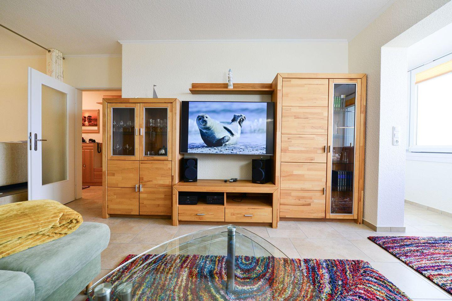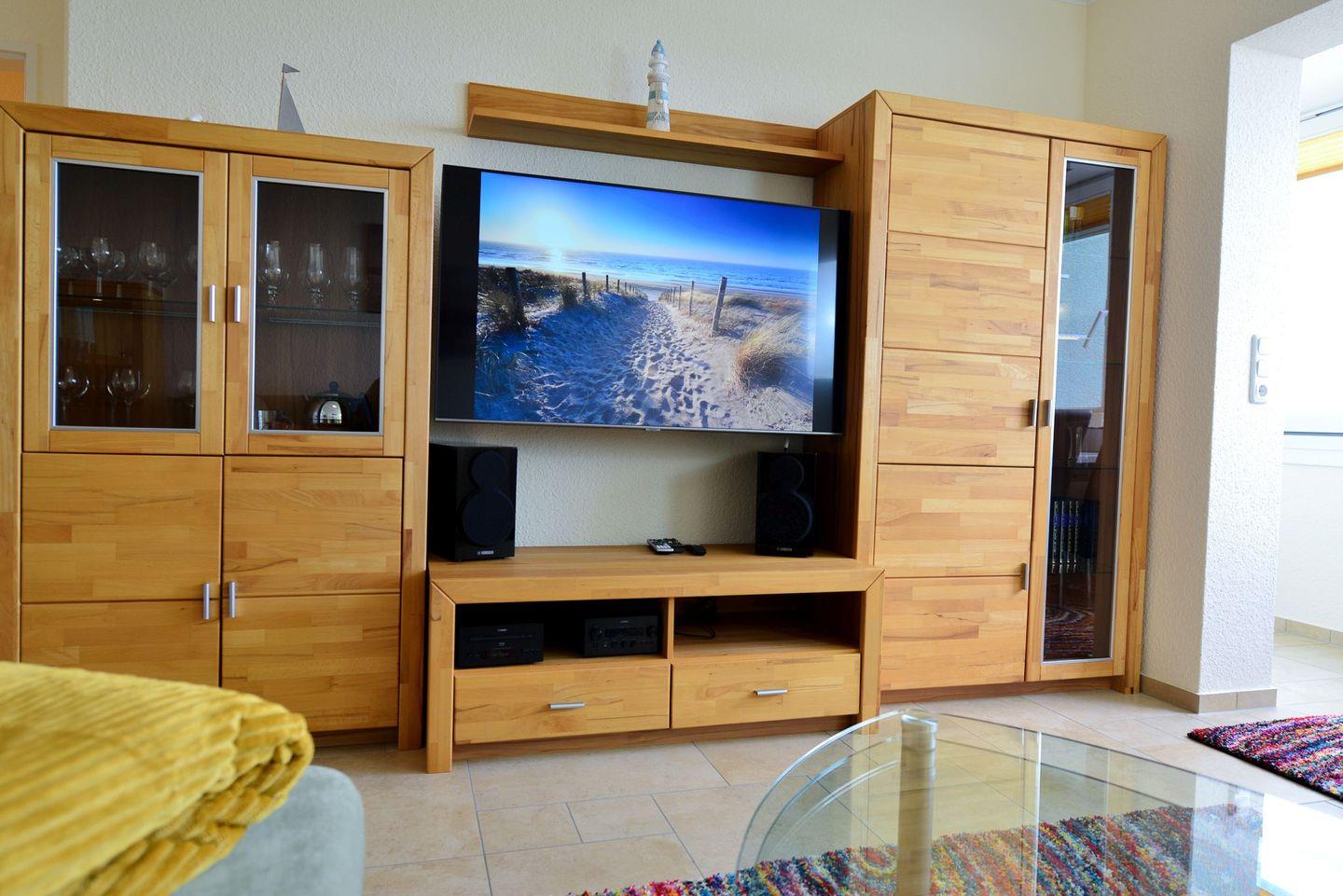 Der Flatscreen TV garantiert gemütliche und entspannte TV Abende, um sich vom langen Strandtag zu erholen und einfach die Seele baumeln zu lassen.