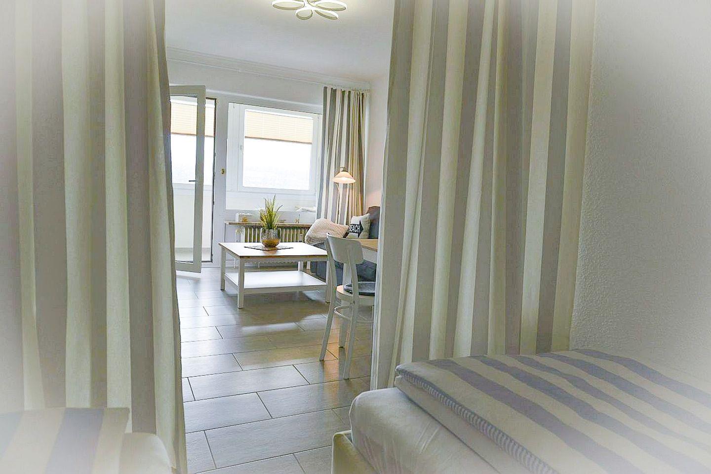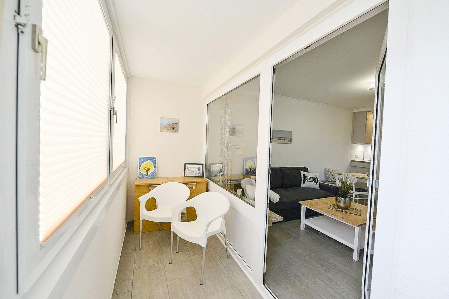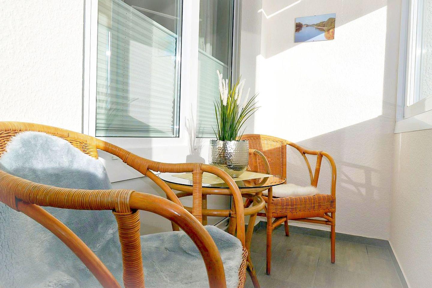 Die 42m² große und liebevoll eingerichtete Ferienwohnung für 2 bis 3 Personen begrüßt Sie mit modernem und charmantem Flair, Schwimmbad, Sauna und viel Raum im Haus für einen entspannten Urlaub mit verglastem Südbalkon zum Öffnen im schönen Norden Deutschlands - Meeresrauschen inklusive!