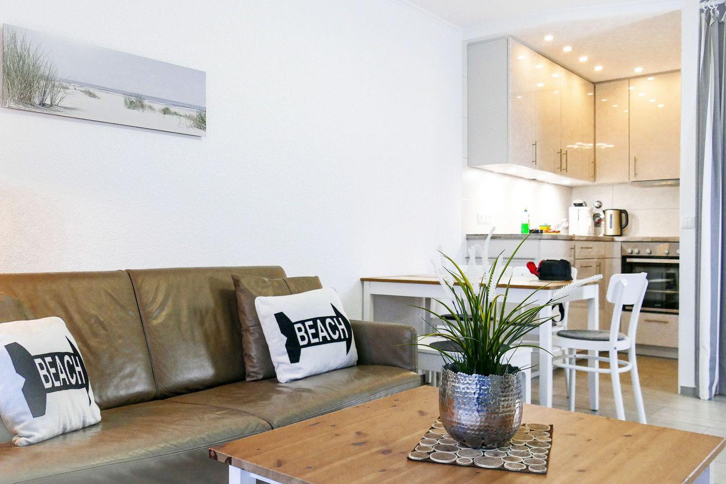 Die 42m² große und liebevoll eingerichtete Ferienwohnung für 2 bis 3 Personen begrüßt Sie mit modernem und charmantem Flair, Schwimmbad, Sauna und viel Raum für einen entspannten Urlaub im schönen Norden Deutschlands - Meeresrauschen inklusive!