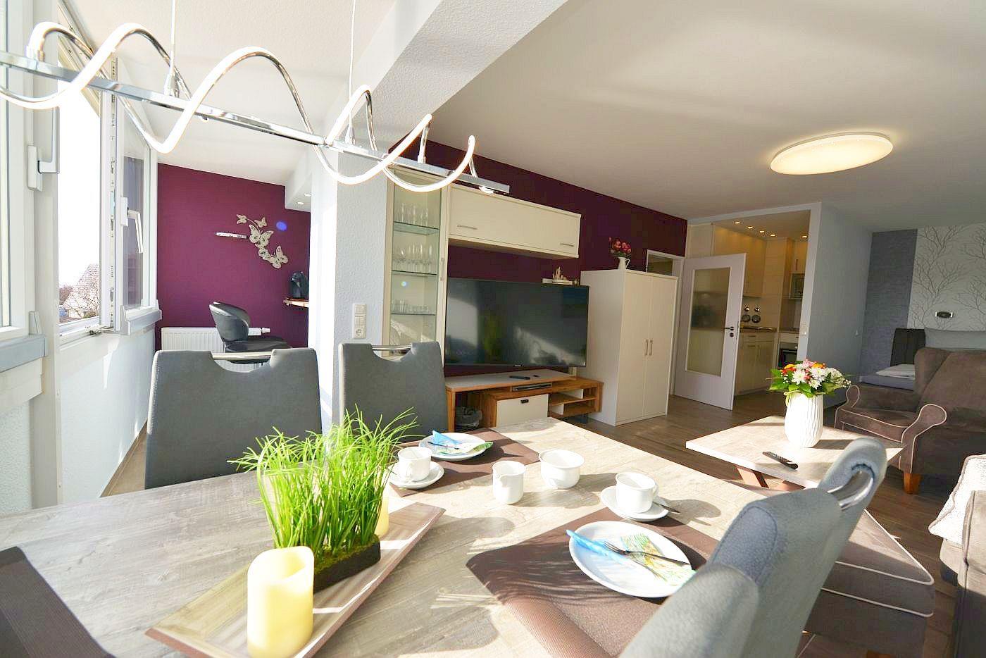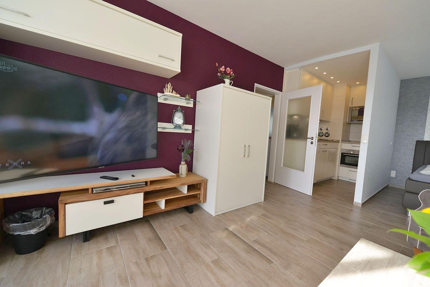 Ein besonderes Highlight dieser Ferienwohnung ist die verglaste und zu öffnende Fensterfront, die Ihnen, eine schöne Südseite mit Sonne bietet.