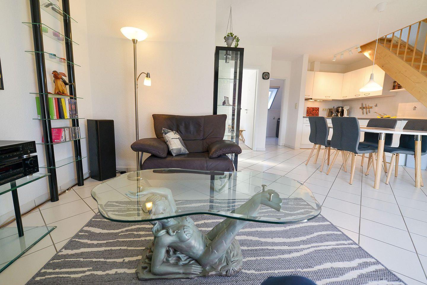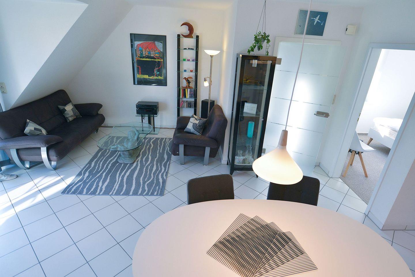 Moderne, nordische und helle Ferienwohnung überdachtem Südbalkon