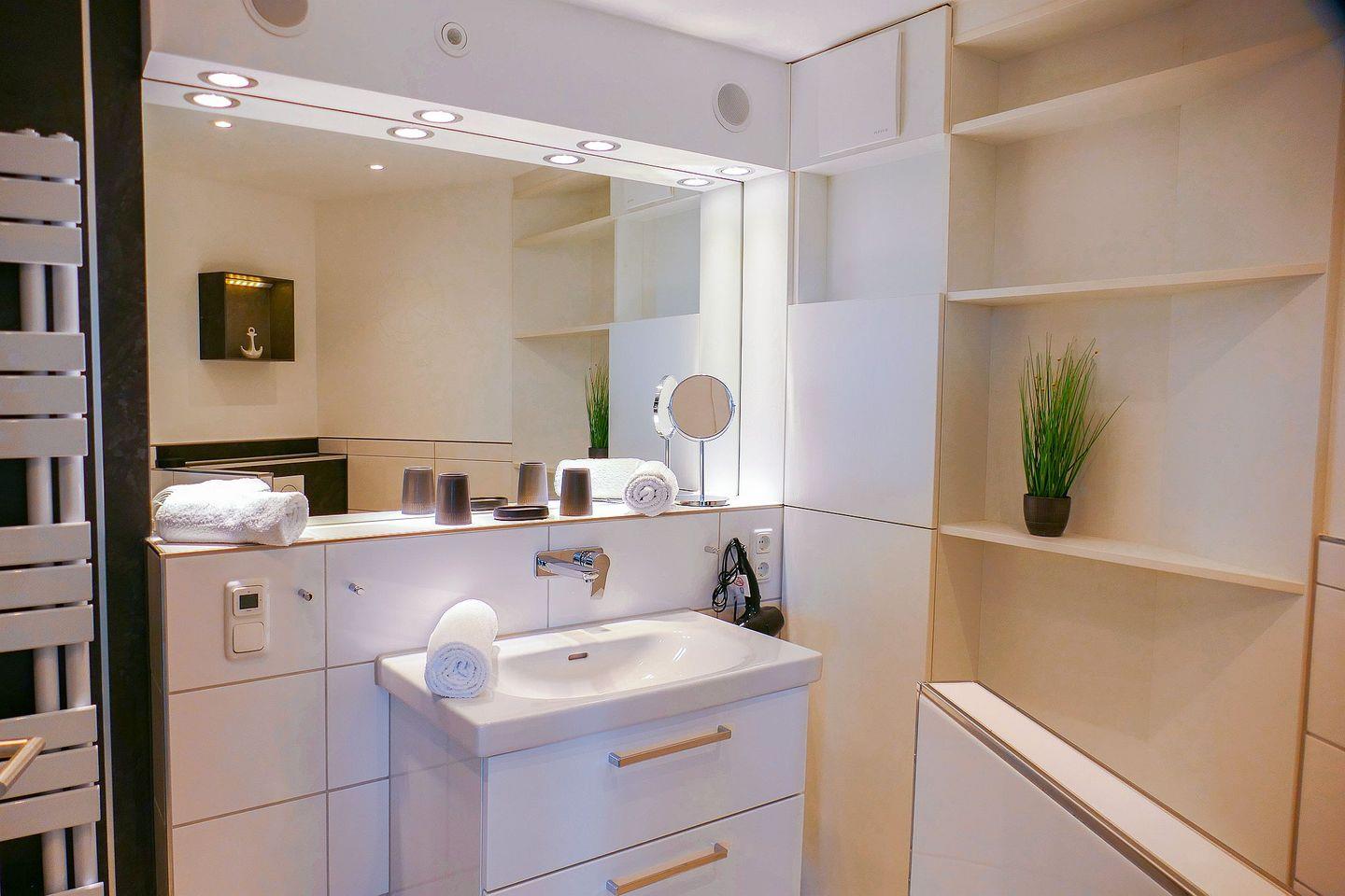 Die vollwertige Ausstattung der Ferienwohnung wird Sie keine Annehmlichkeiten des Alltags vermissen lassen und bietet Ihnen alles, was Sie für einen Urlaub ohne Abstriche an der Nordsee benötigen. Die schöne und vollwertige offene Küchenzeile eignet sich, um auch aufwendigere Gerichte zuzubereiten und typische nordische Gerichte auszuprobieren, der Wohnbereich lädt zu gemütlichen Abenden vor dem Flatscreen TV ein und das schöne Bad garantiert Erholung und neue Energie an jedem Ihrer Urlaubstage.