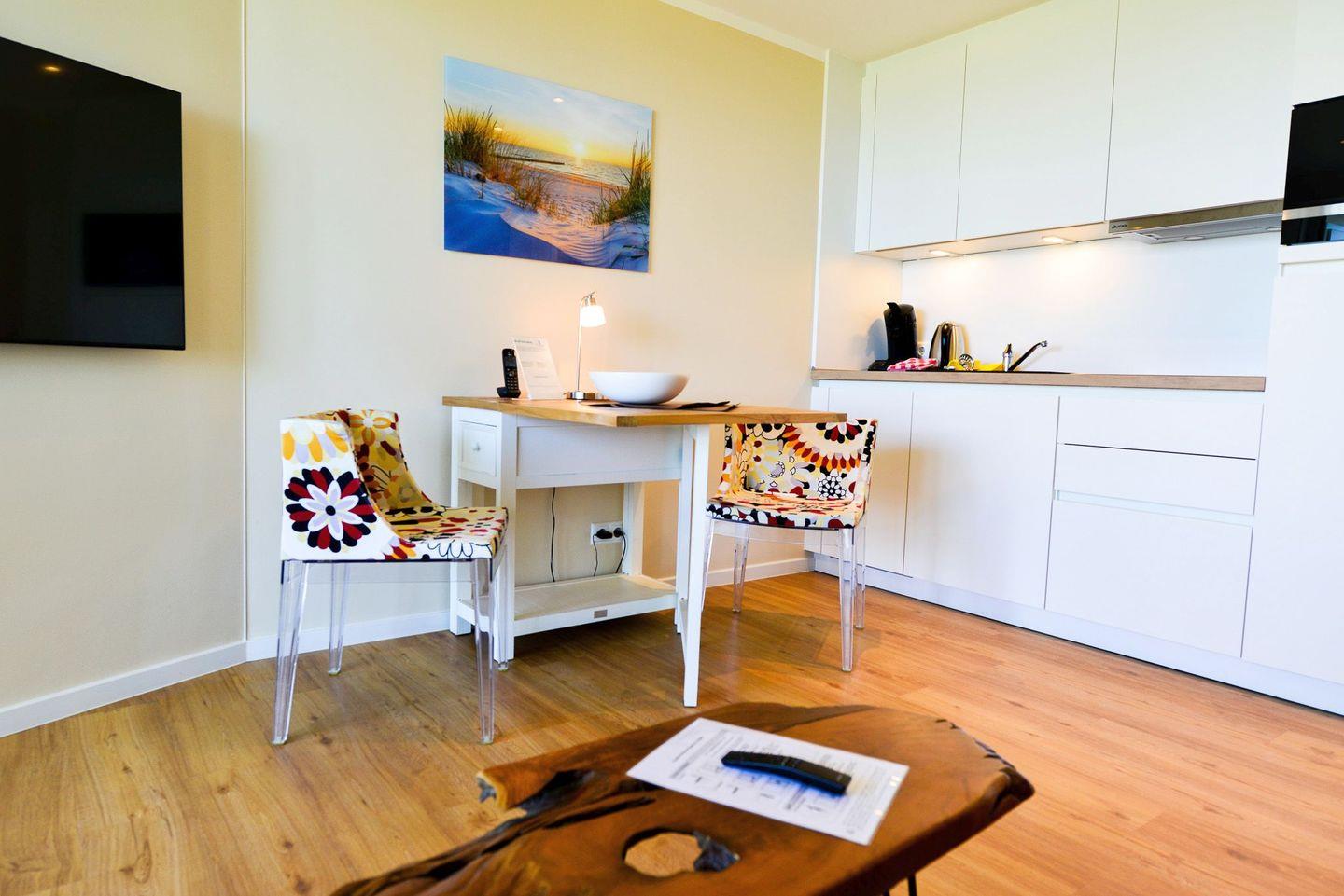 Logenplatz am Meer: Die 33 m² große Penthousewohnung H511 im Haus Horizont II in Cuxhaven-Sahlenburg bietet Platz für 2 Personen und liegt direkt am Strand.