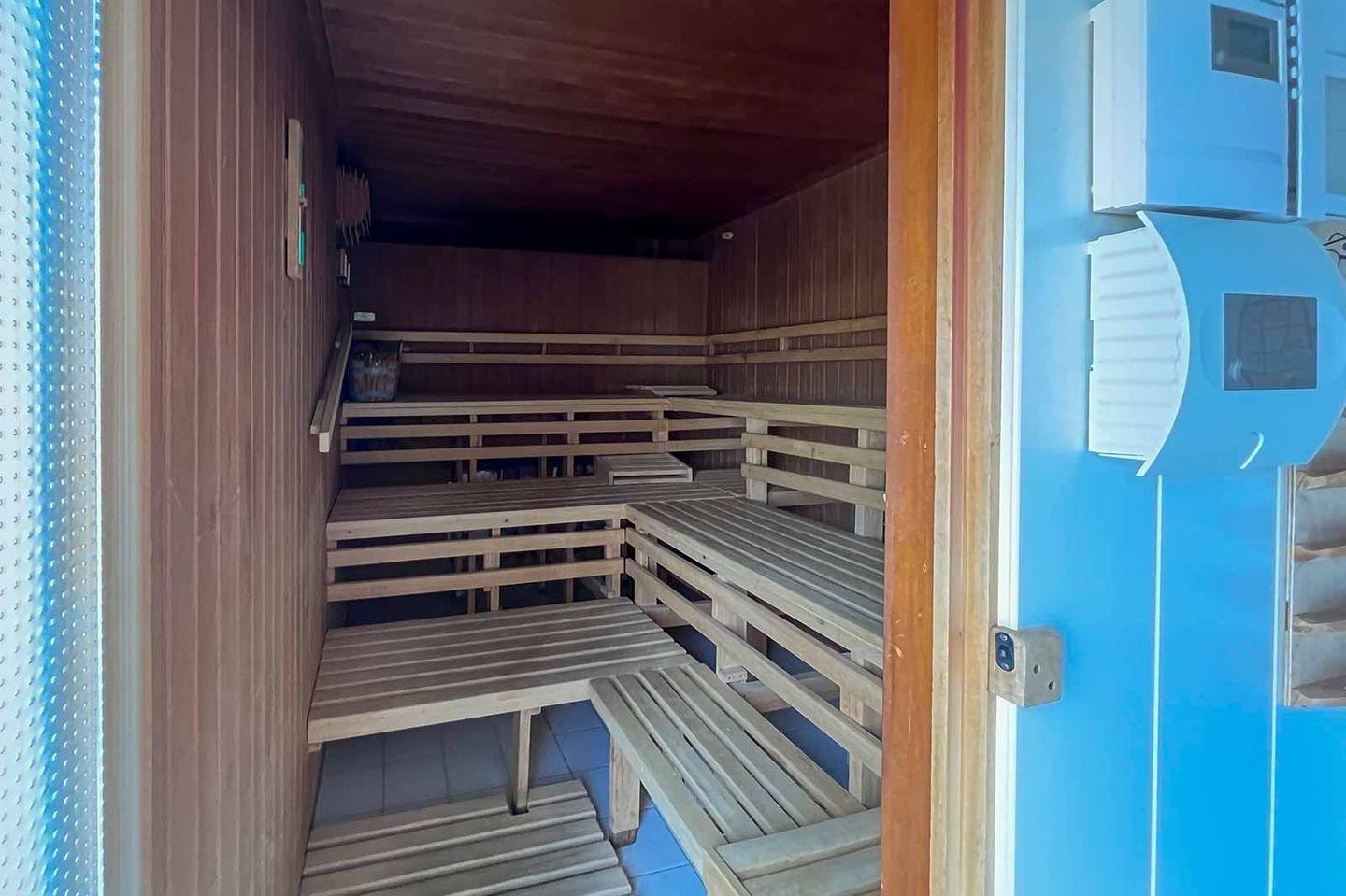 Ein modernes Schwimmbad mit Panorama-Meerblick auf die Nordsee und eine Sauna sowie ein Solarium befinden sich direkt im Haus und darf von den Gästen bei Verfügbarkeit kostenfrei genutzt werden.
