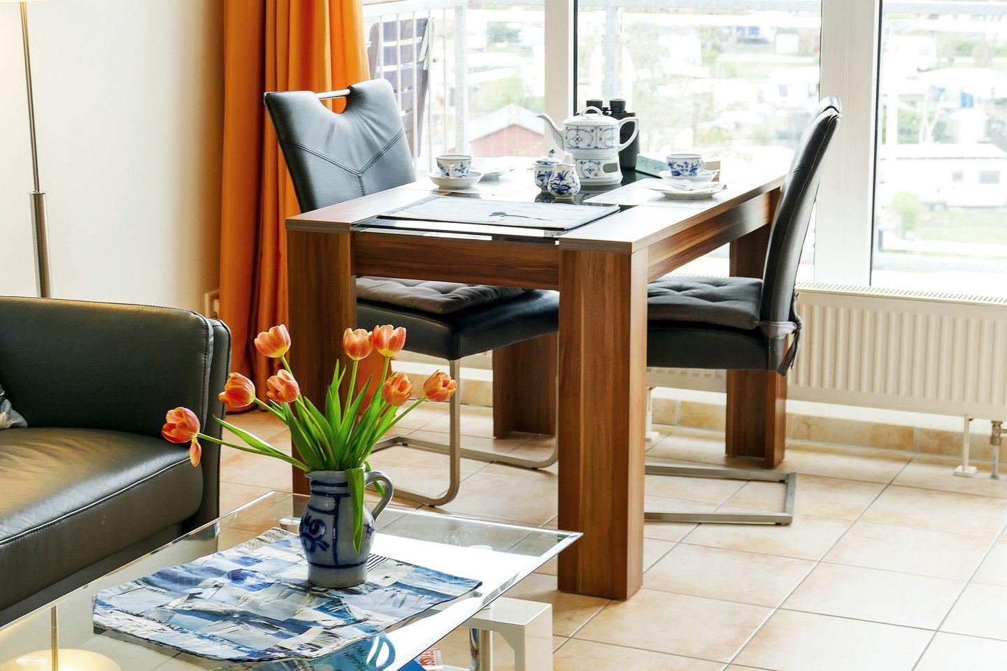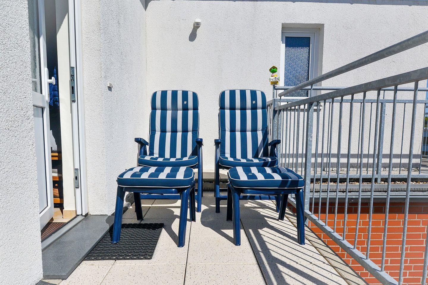 Besonderes Highlight ist der großzügige Dachterrassenbalkon mit Süd-West-Ost-Ausrichtung und Meerblick, der zu jeder Tageszeit zum Verweilen einlädt – ob beim Frühstück an der frischen Nordseeluft oder bei entspannten Abenden.