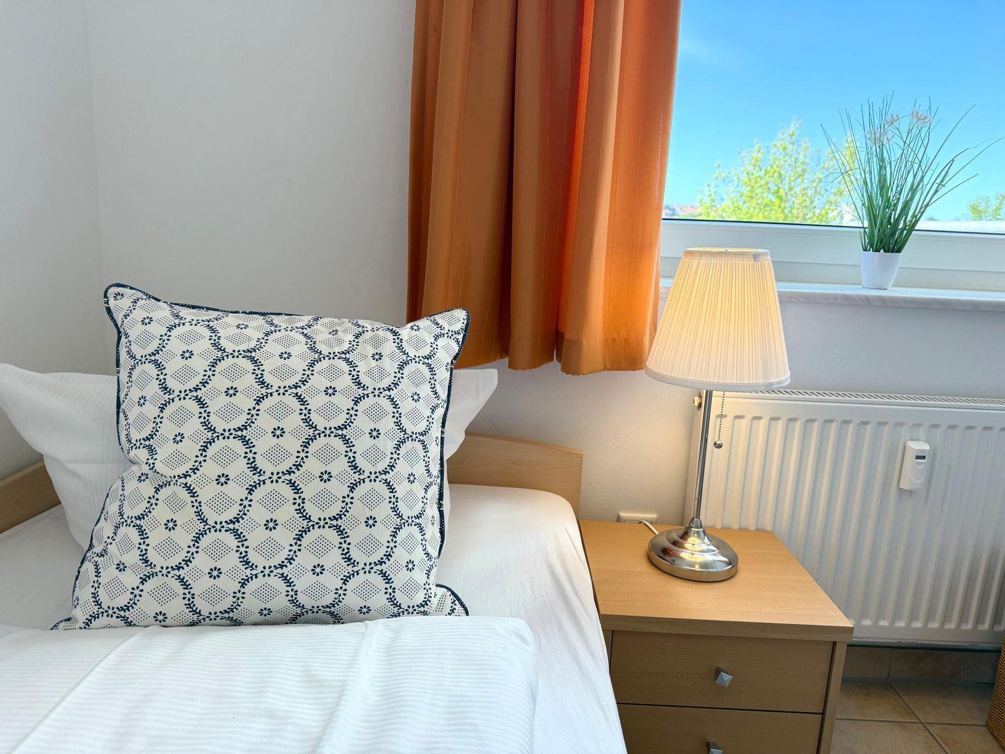 Die Ferienwohnung verfügt über zwei separate Schlafzimmer, die komfortabel eingerichtet sind. Zudem finden Sie ein Badezimmer mit Dusche, Waschbecken und WC. Die Unterkunft erlaubt auf Anfrage Haustiere.