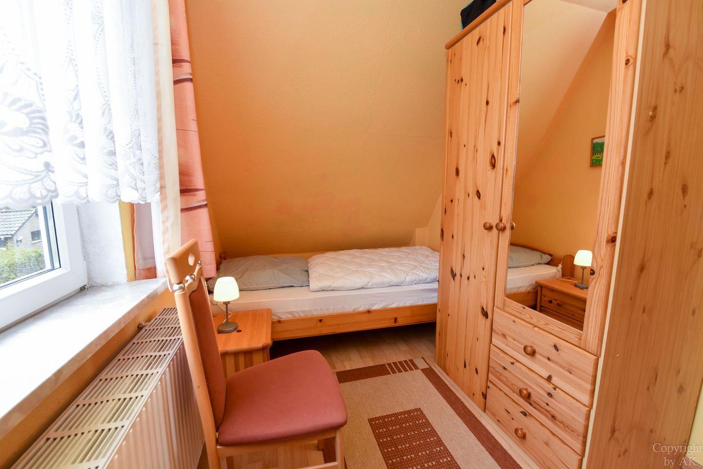 Die Unterkunft bietet auf ca. 60 qm Wohnfläche im Erdgeschoss einen einladenden Wohnbereich sowie einen Essbereich mit einer zum Wohnraum offenen und gut ausgestatteten Küche, die mit Mikrowelle, Geschirrspüler und Kühlschrank ausgestattet ist. Im Obergeschoss erwarten Sie das Elternschlafzimmer mit Doppelbett, das Kinderzimmer mit zwei Einzelbetten und das Badezimmer mit WC.
