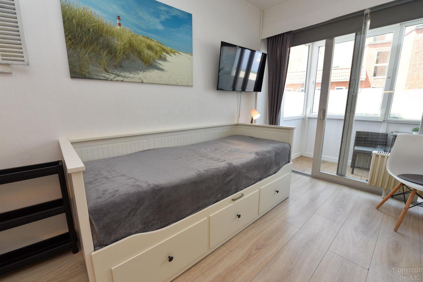 Verbringen Sie Ihren Urlaub in der stufenfreien 1-Raum-Ferienwohnung "Seehütte 05", direkt am malerischen Strand von Duhnen, nur wenige Schritte vom Thalasso Ahoi Bad entfernt.