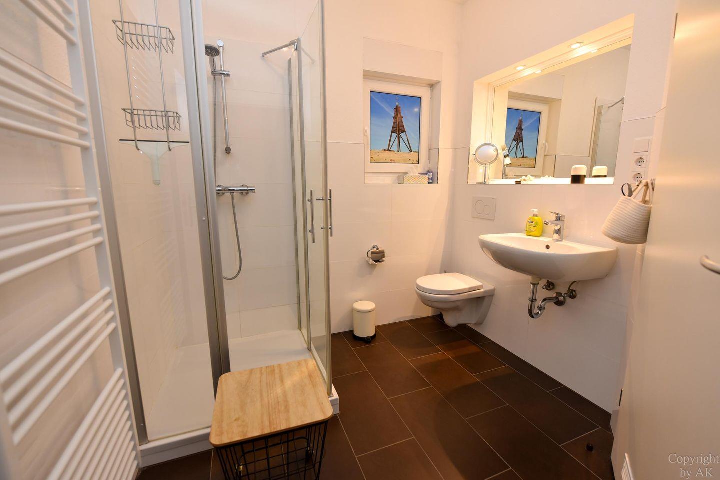 Die Ferienwohnung verfügt über eine Wohnküche mit Essbereich und einem gemütlichen Sofa im Wohnbereich. Das separate Schlafzimmer ist mit einem Doppelbett und einem großzügigen Kleiderschrank ausgestattet. Im modern gefliesten Badezimmer erwartet Sie eine bodentiefe Dusche.