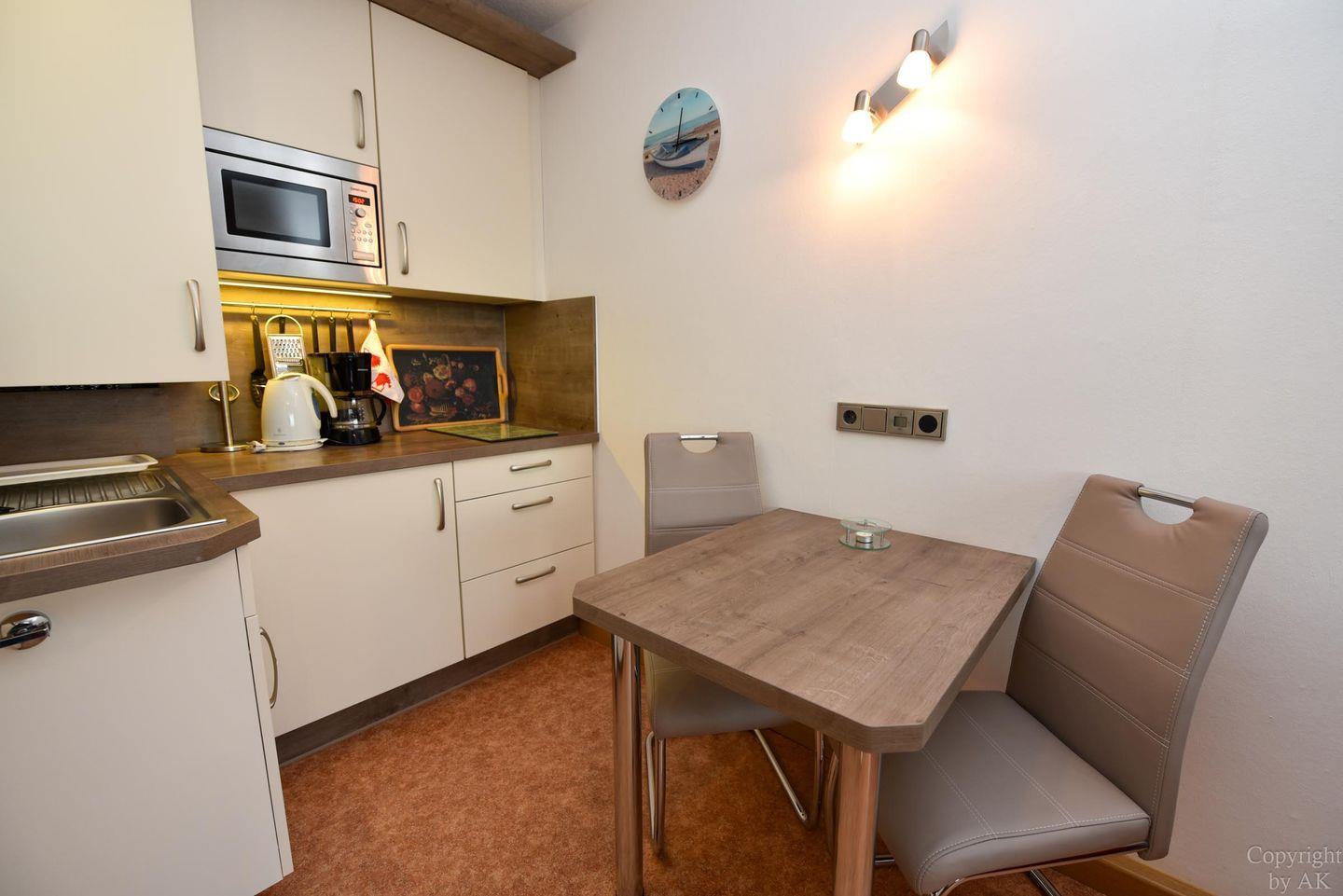 Die Wohnung ist mit WLAN und einem LCD-Fernseher ausgestattet. Die Küchenzeile umfasst ein 2-Platten-Ceranfeld, einen Kühlschrank, eine Kaffeefiltermaschine, einen Wasserkocher, eine Mikrowelle und einen Toaster. Für die Gäste des Hauses Atlantic stehen zudem ein Schwimmbad, eine Sauna, ein Fitnessraum und eine Tischtennisplatte zur Verfügung. Zusätzlich bietet die Wohnung eine abschließbare Einzelgarage zum Parken und für Fahrräder zwei Stellplätze im Fahrradschuppen.
