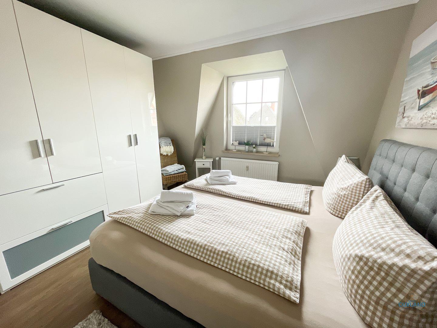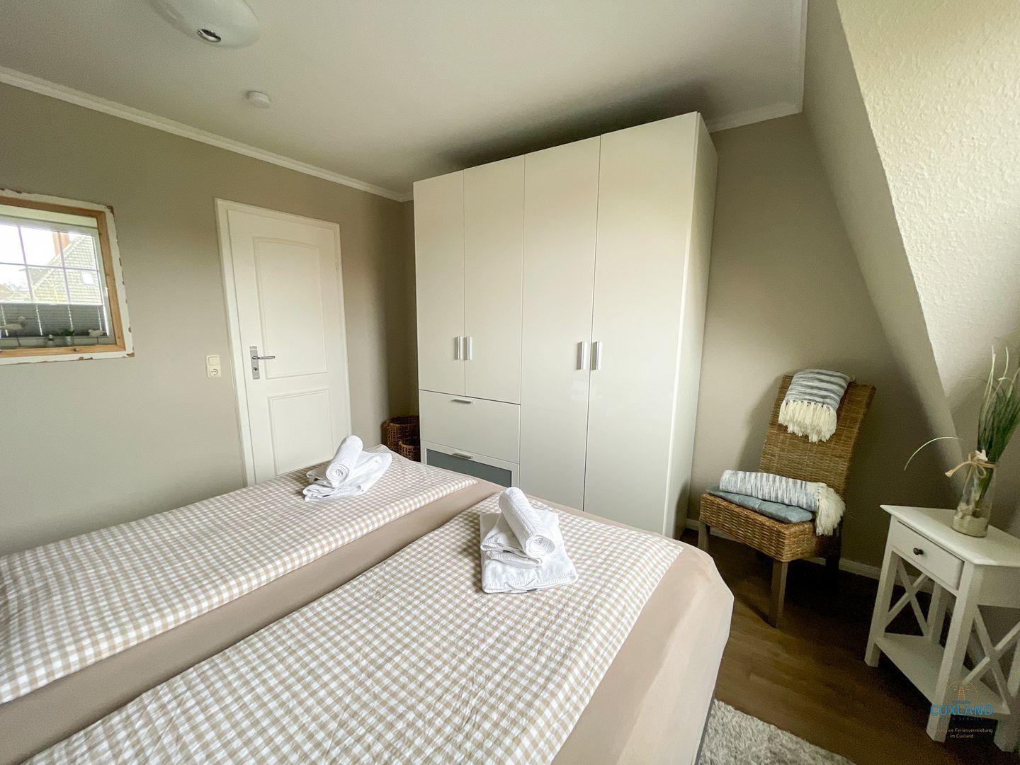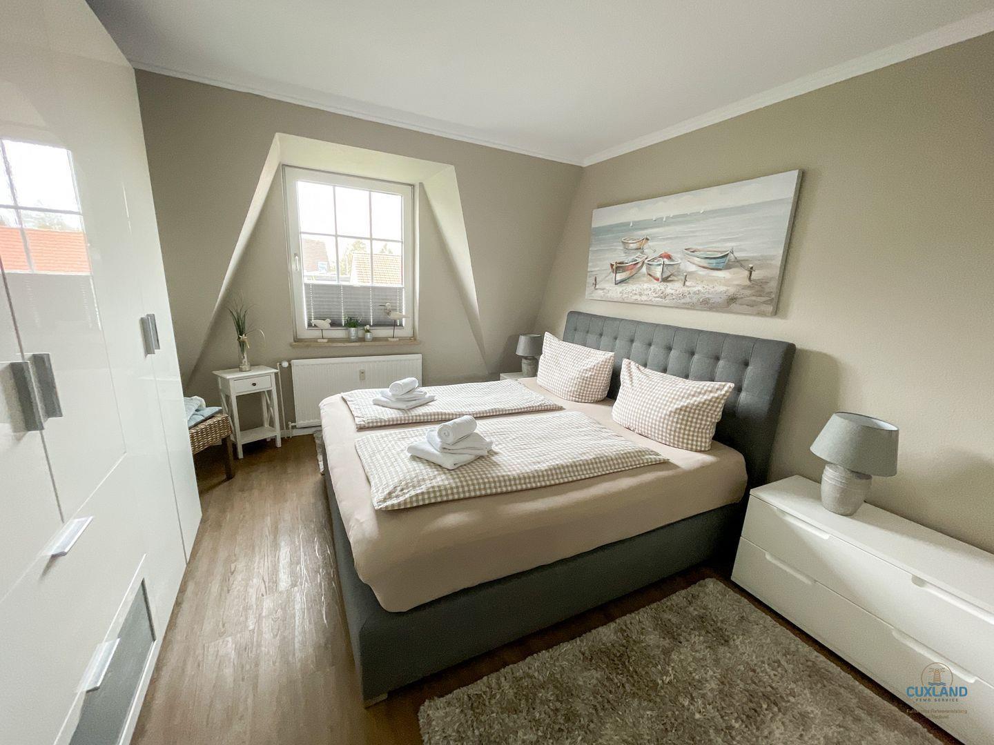 Garten verweilen könnt. Das Schlafzimmer ist mit einem Boxspringbett und einem