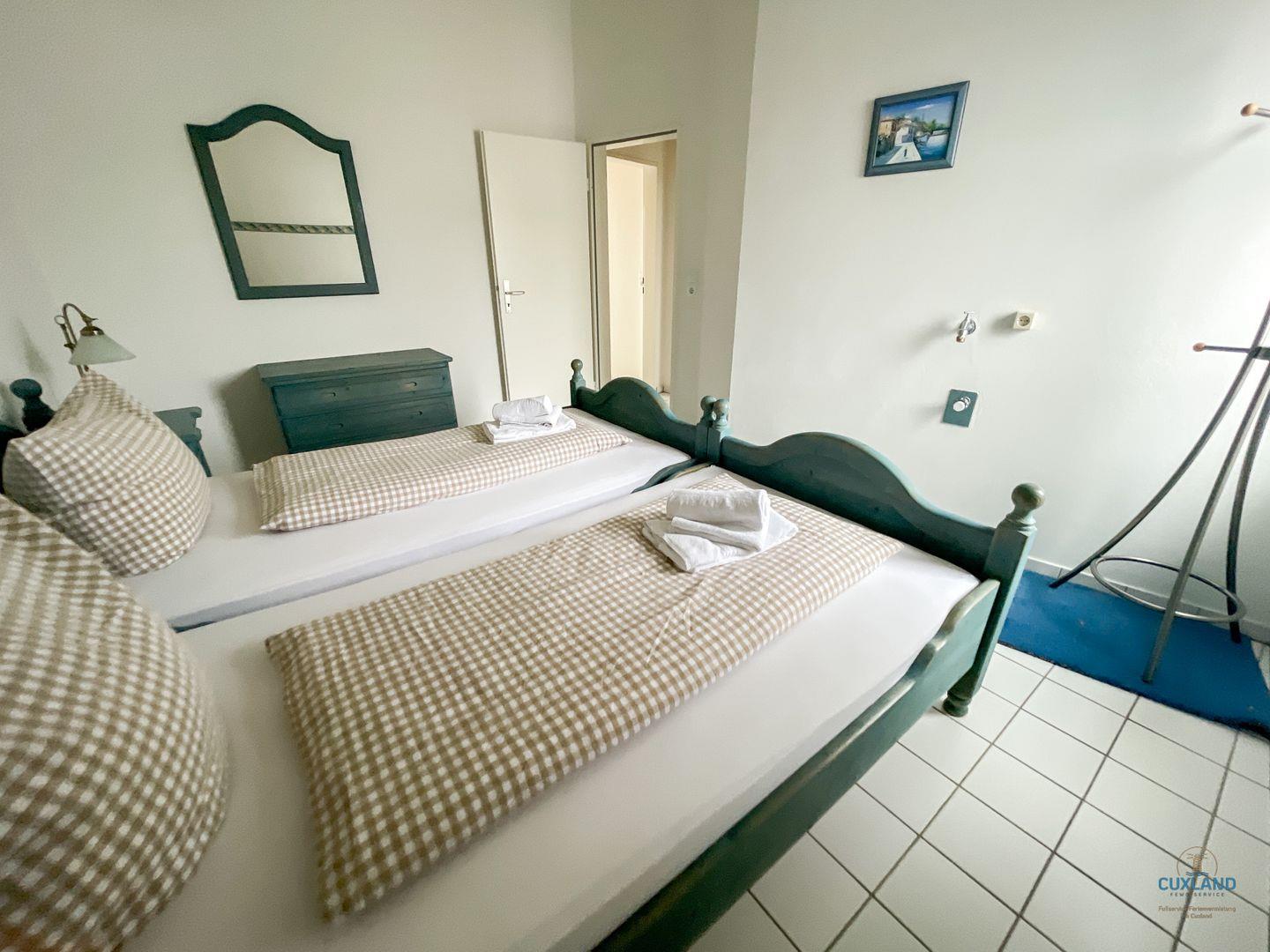 - 1 Schlafzimmer mit zwei Einzellbetten (90x200cm), die Betten können zu einem Doppelbett zusammengeschoben werden