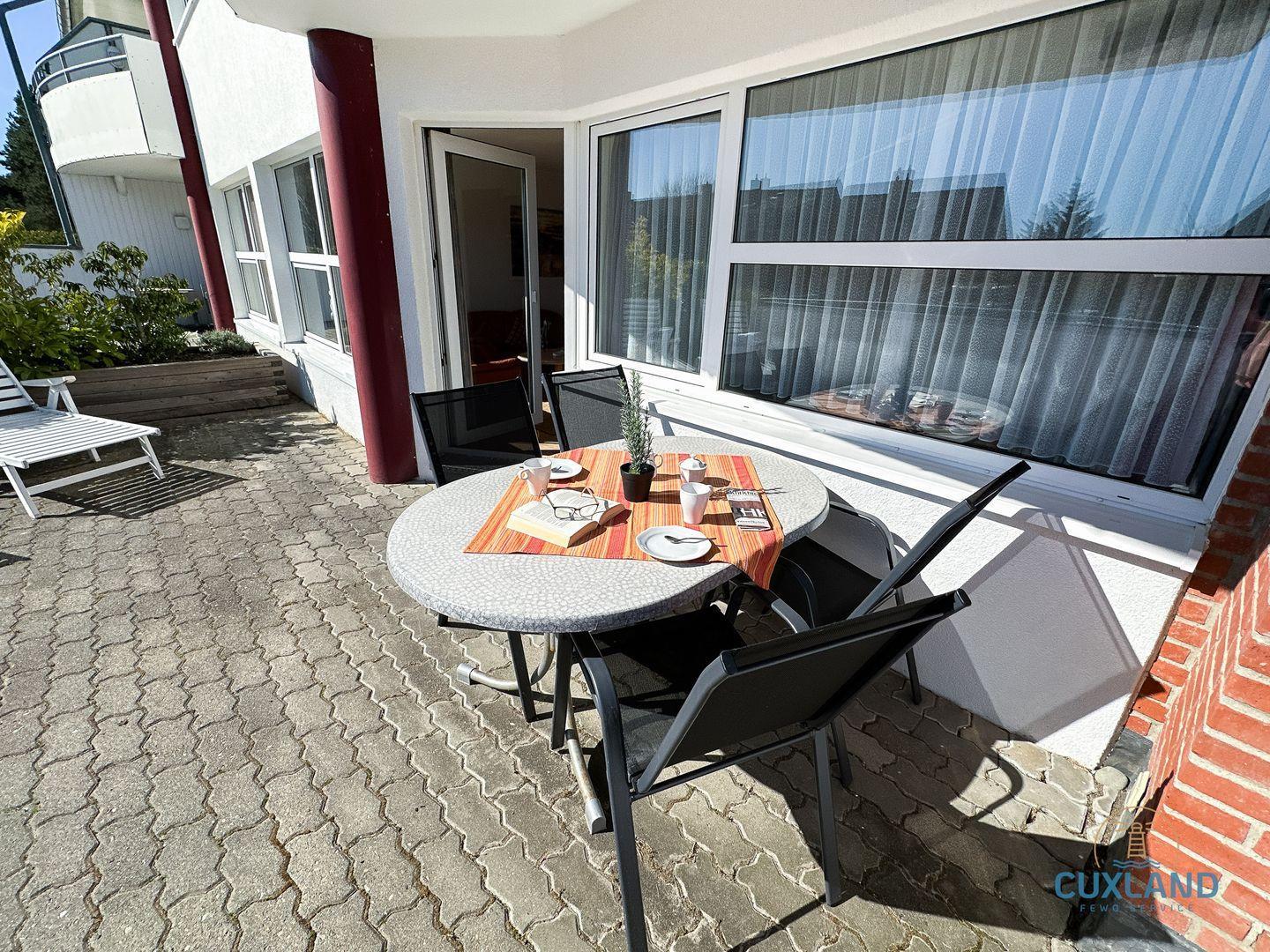 Diese geräumige 65qm Erdgeschosswohnung im Haus Seeland 1 bietet Platz für bis zu 4 Personen mit zwei großen Schlafzimmern. Von der großen privaten Sonnenterrasse, erreichbar vom Wohnzimmer aus, genießt ihr erholsame Momente. Die separate Küche ist gut ausgestattet, ideal für Familienküche. Ein kostenfreier Waschmaschinenzugang im Bad, WLAN und ein eigener Tiefgaragenparkplatz sind ebenfalls inklusive.